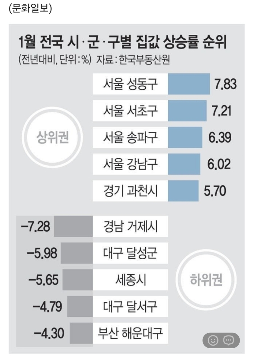 1월 전국 집값 상승률 순위
