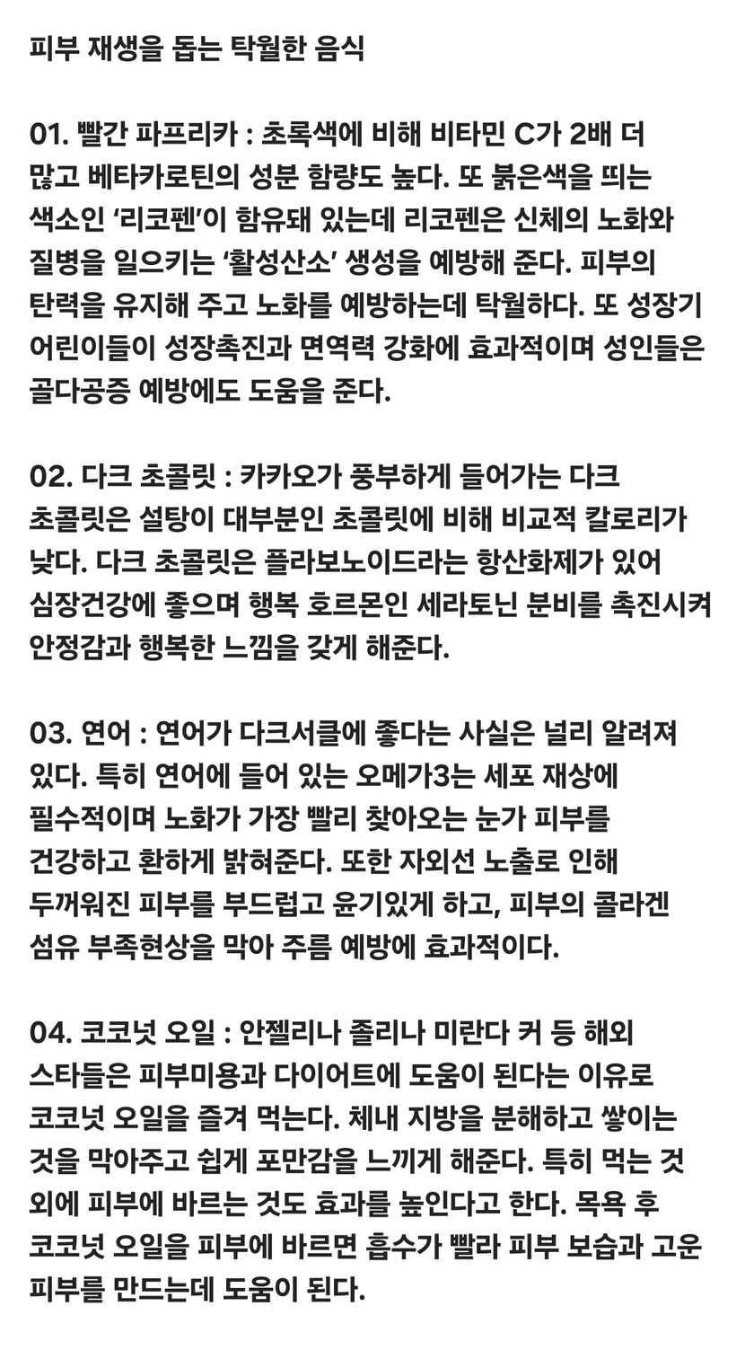 피부재생을 돕는 탁월한 음식