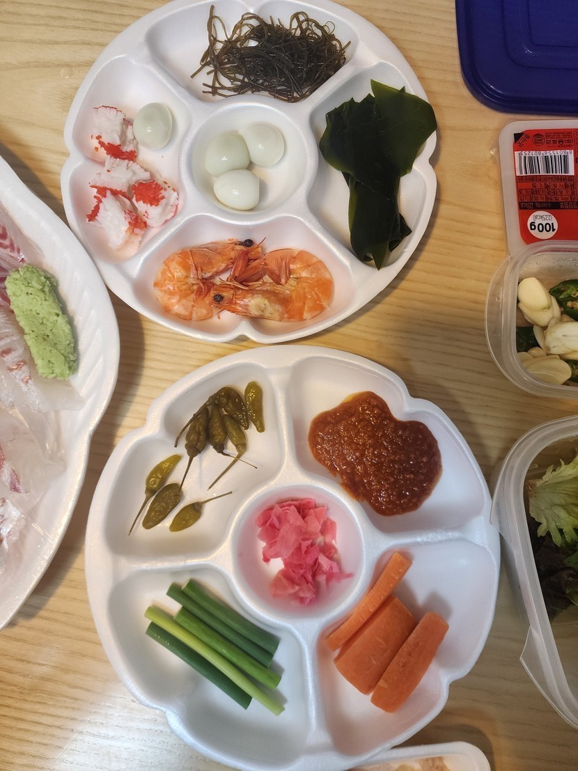 마나님과 둘이 오붓하게 도미회에 쐬주 한잔