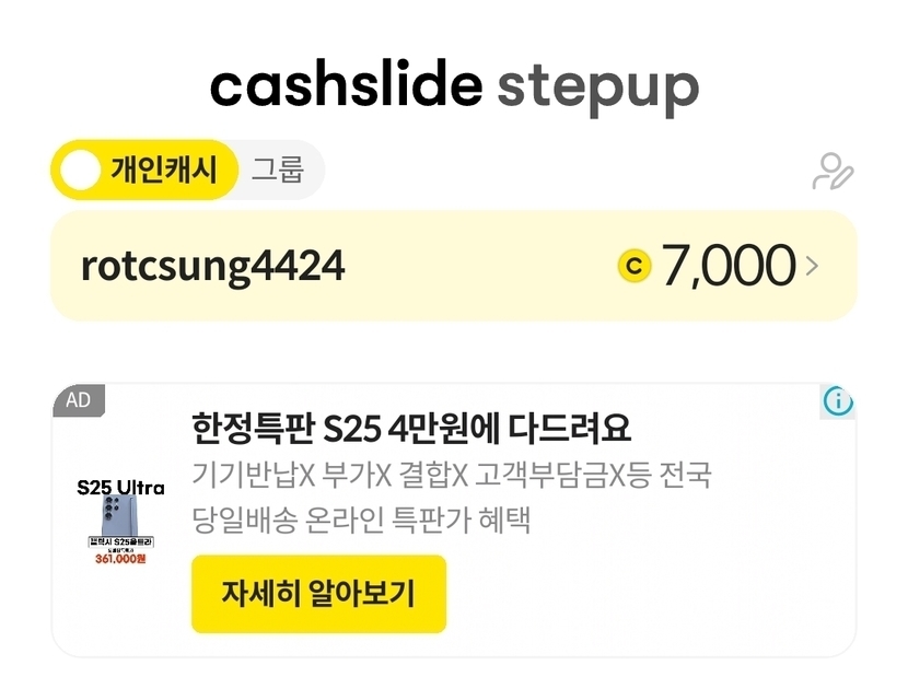 드디어 7천캐시 인증