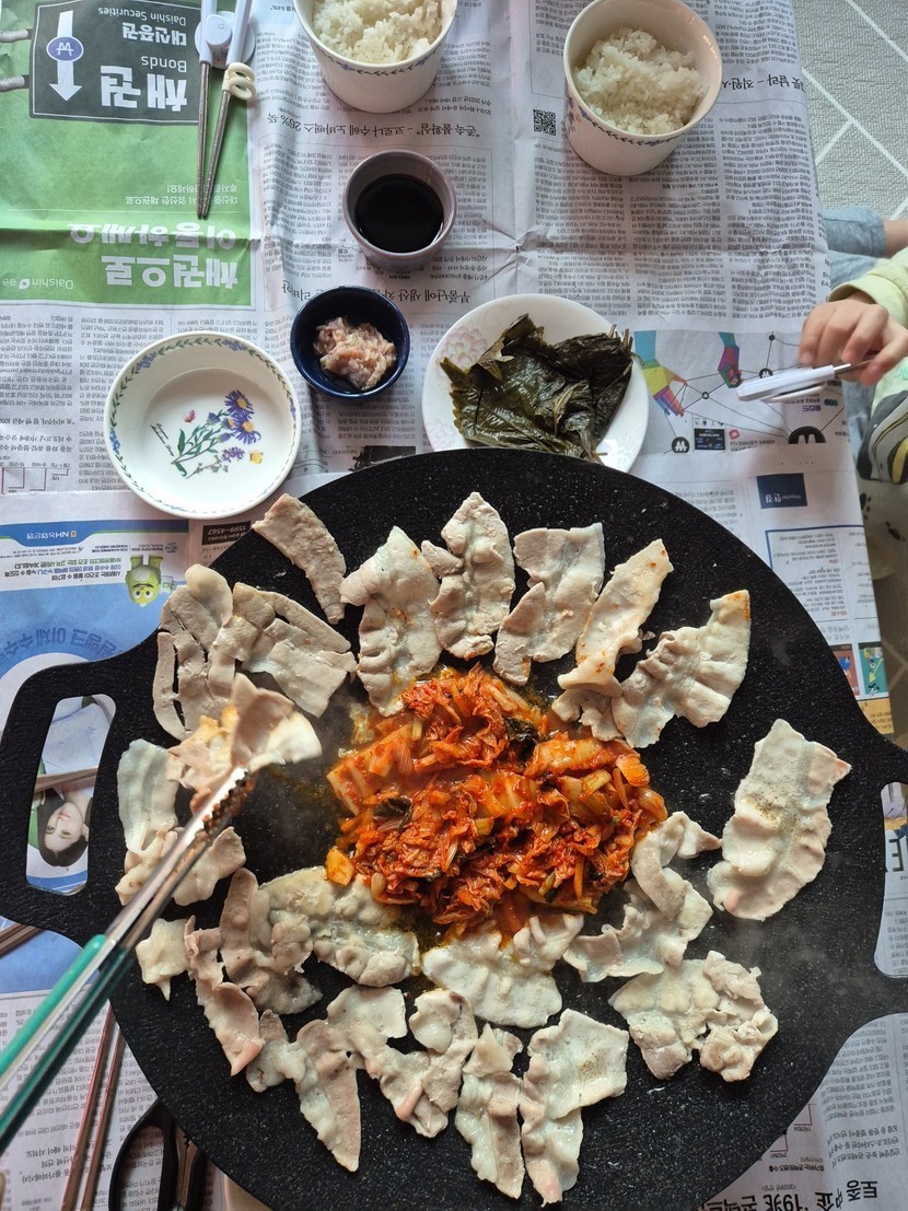 냉동대패삼겹살에 김치 구워서 맛있게 얌얌했네용