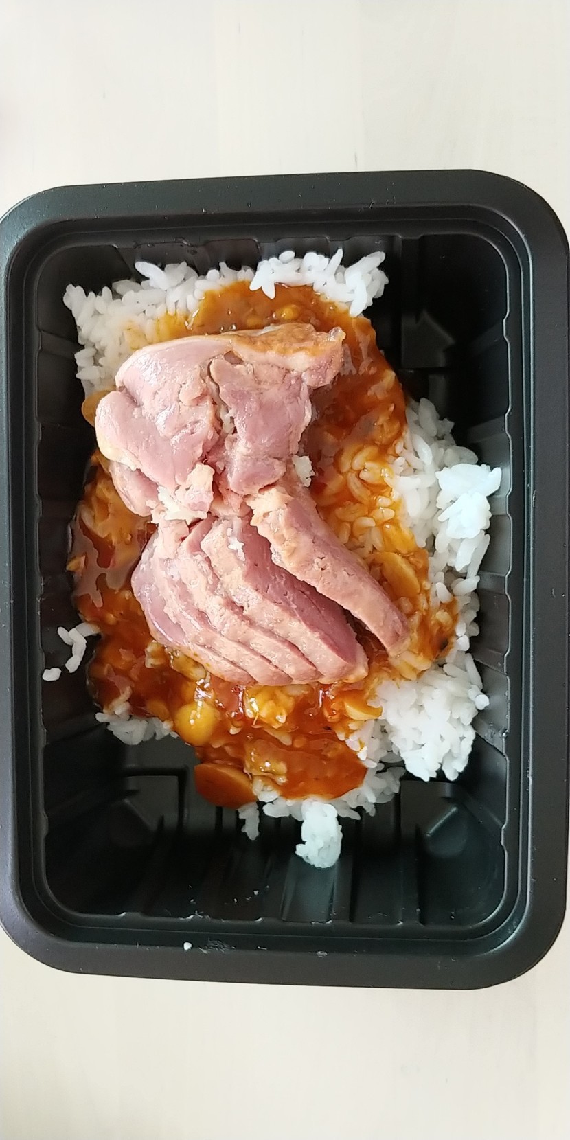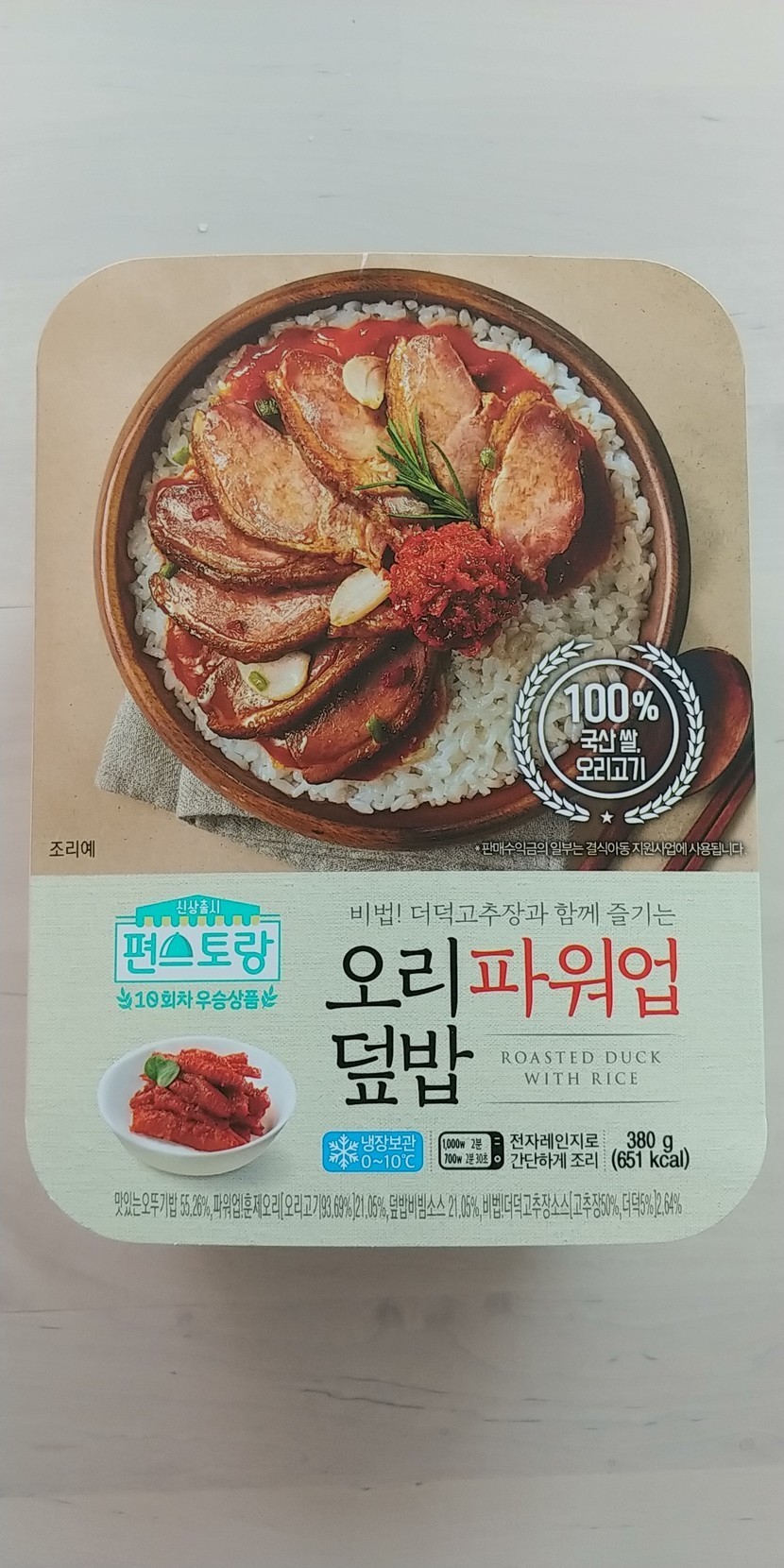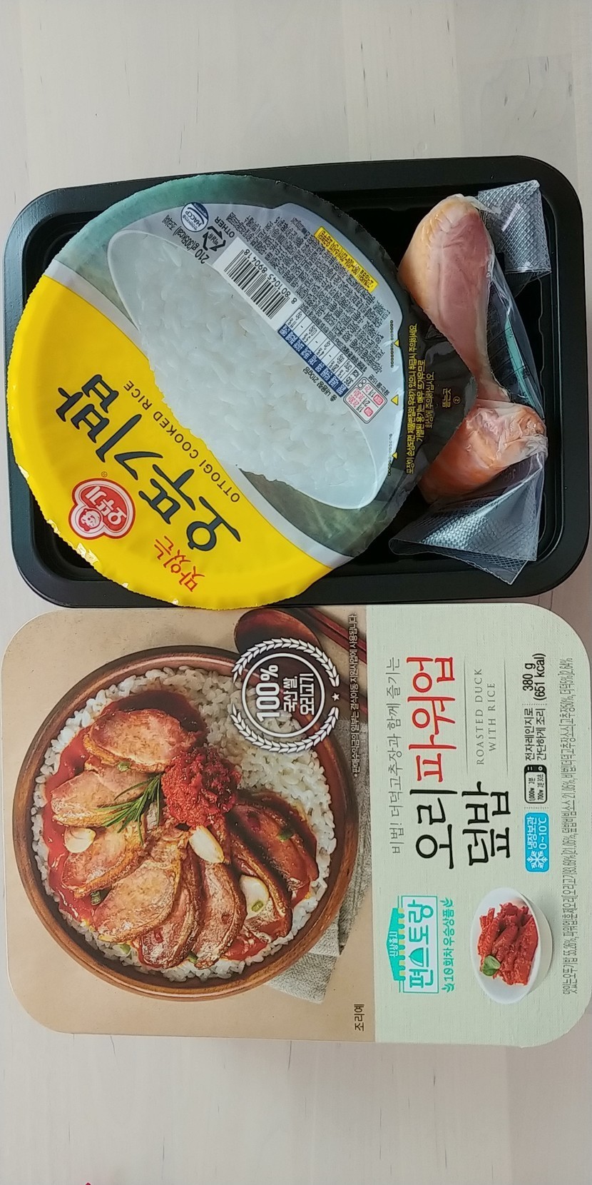 뜯어보니 더덕이 따로 들어있진 않고 소스에 들어있고 오리가 편덩어리가 아니라 좀더 작게 잘려져 있음 밥이랑 고루 먹기 편할텐데 싶었다. 소스에 더덕 마늘이 들어있어 전체적으로 알싸한 맛이라 애들 먹기에 좀 맵겠다.
