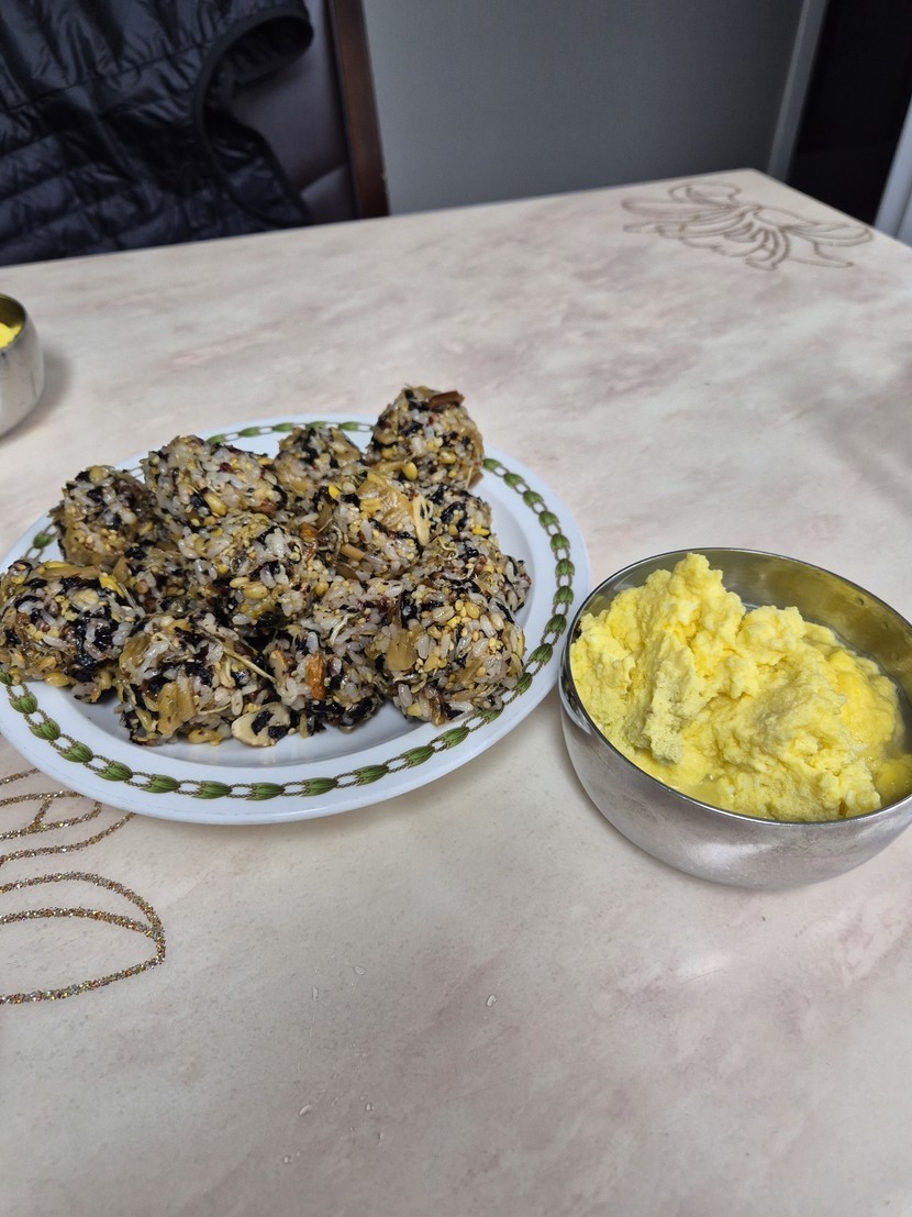 계란찜에 주먹밥~~