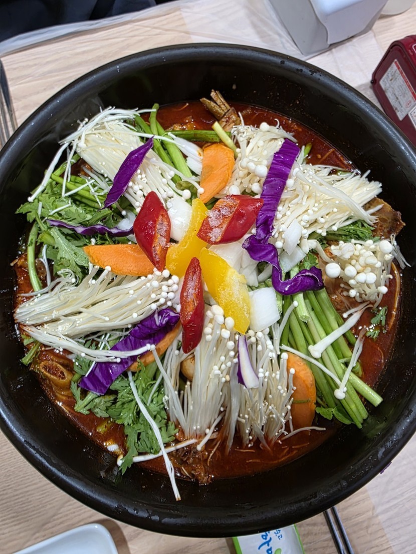 매운 닭도리에 달달커피