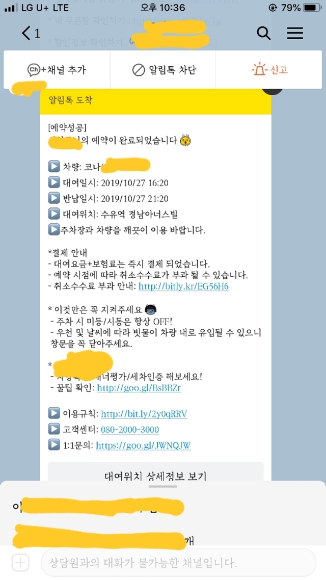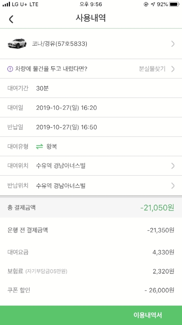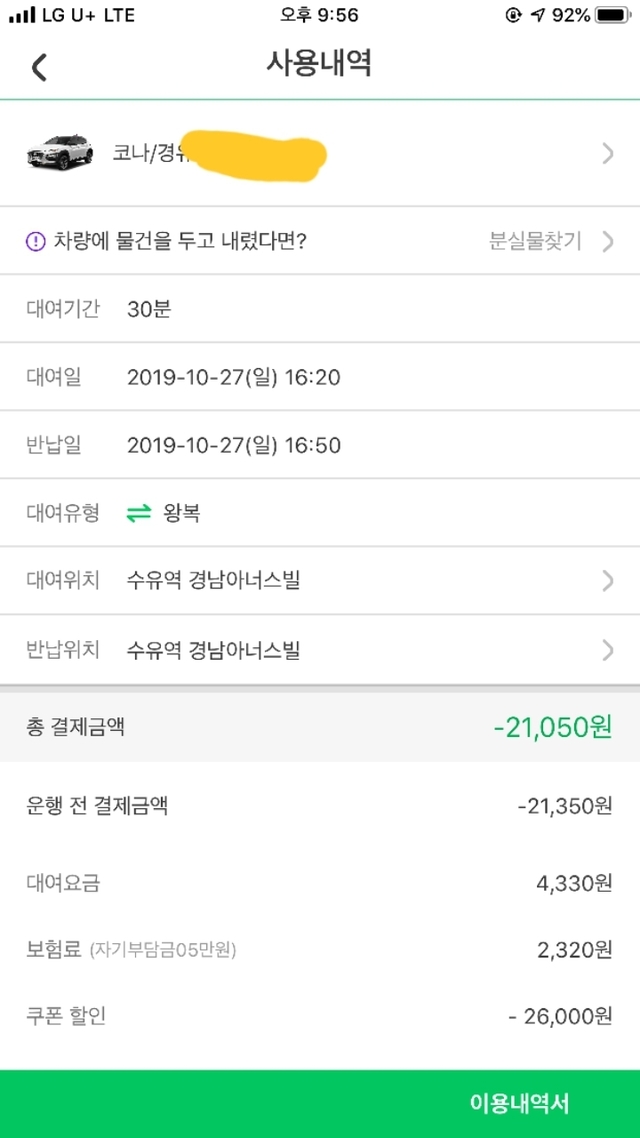 빌리는 상황이 너무 겁이나 다시는 이런 형태의 카 쉐어링을 이용 못 할것 같고 다른분들도 한번 생각해 보셨으면 좋겠습니다.
