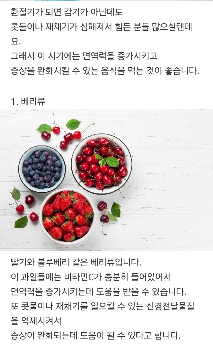 환절기 콧물 날때 도움되는 음식