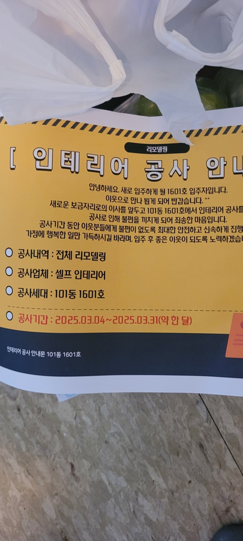 25.03.20 262 읽음 공손한이웃 gusdhr32740706 구독하기 1 4 콘텐츠의 수익 0 아파트에 이사오는 분이 리모델링하게되어 소음에 죄송하다는 글과 선물을 보내왔어요 4 0 / 300 입력