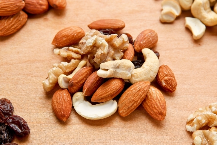 다이어트 간식용으로 좋다. 단백질과 식이섬유, 심장 건강에 좋은 지방이 들어있다. 호두, 잣, 아몬드 등 견과류는 적당히 섭취하면 체중을 줄이고, 콜레스테롤 수치를 낮추는 데도 도움을 준다.