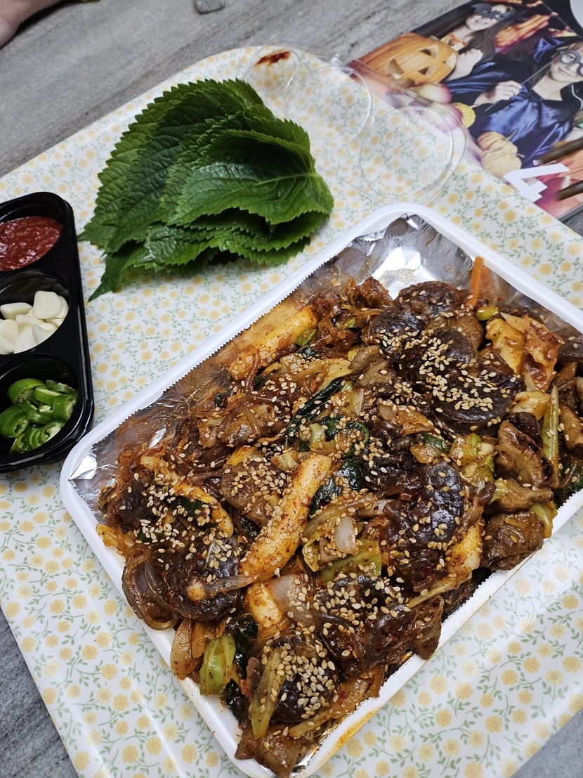 야식으로 순대곱창볶음 먹어요