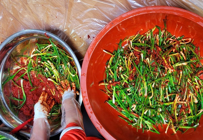 파 김치 담아네요
