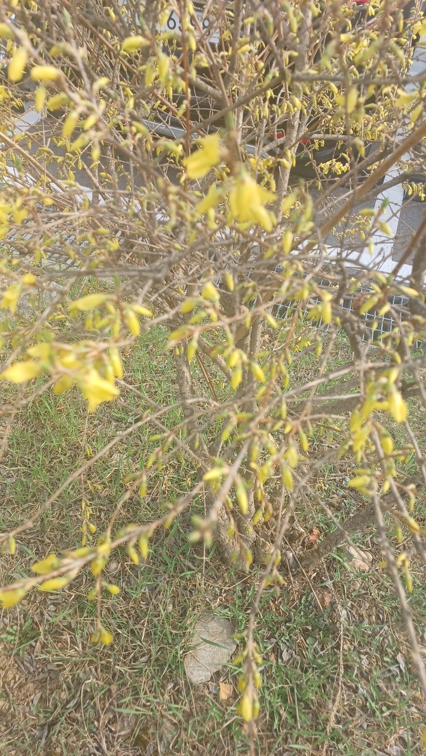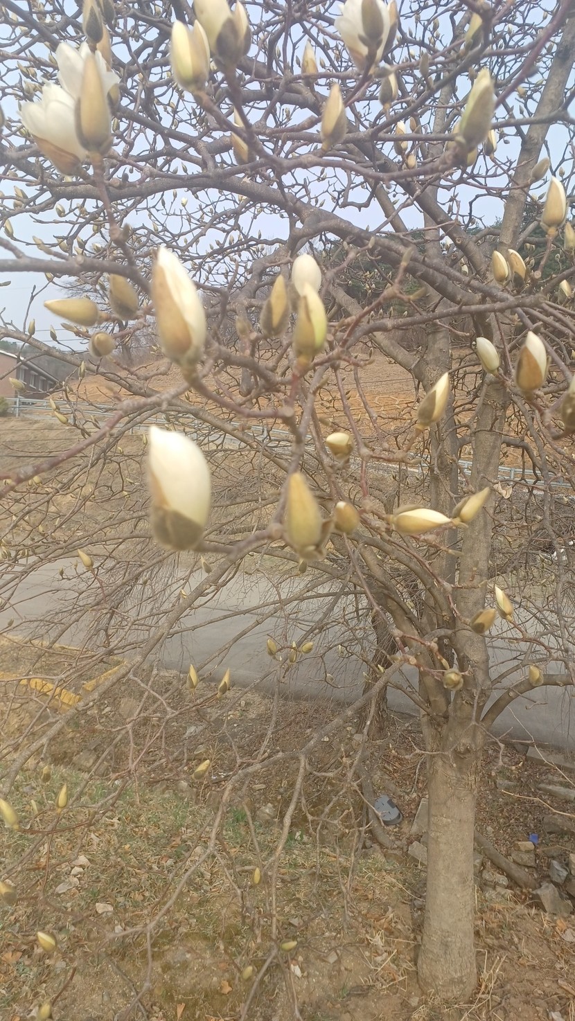 목련과 개나리가 꽃망울을 머금고 반짝