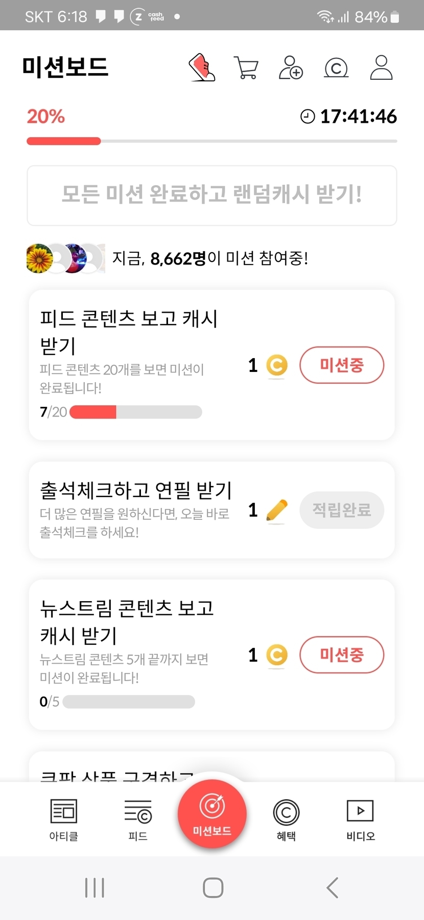 지금시각 06시18분 미션보드~미션 중 인증샷~~