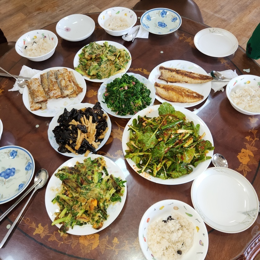 밭에서 먹은점심밥상