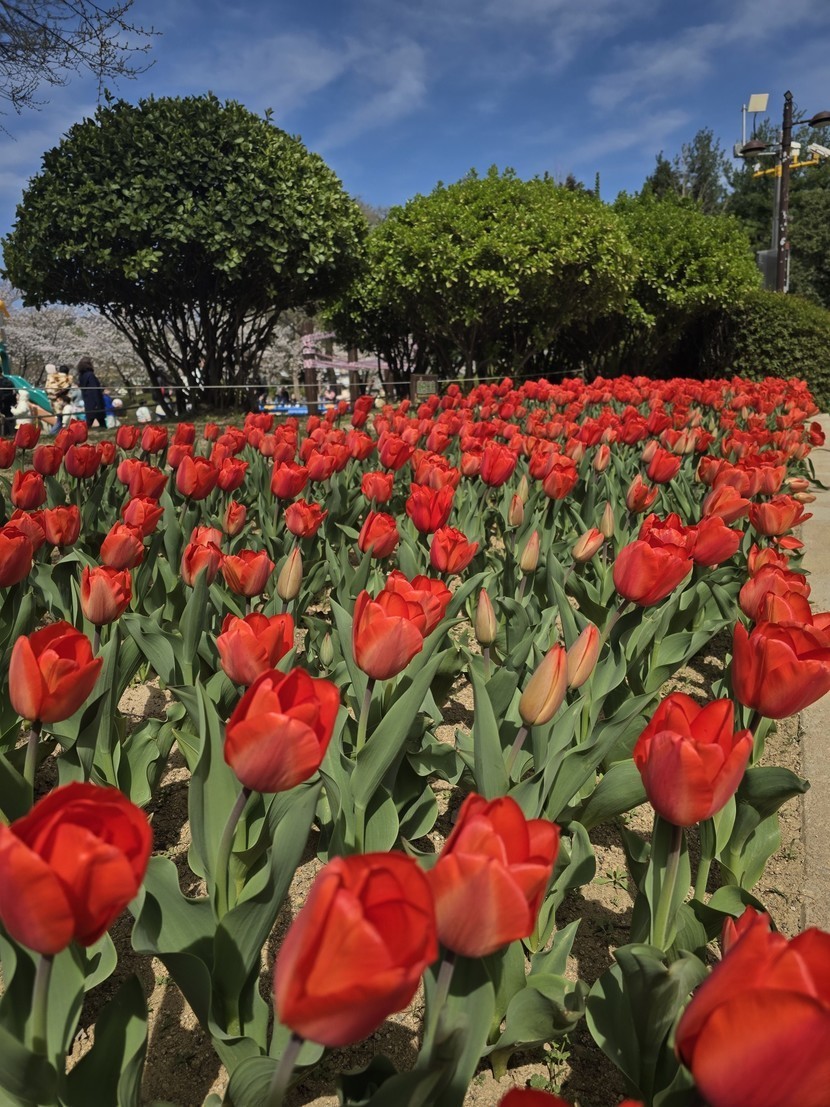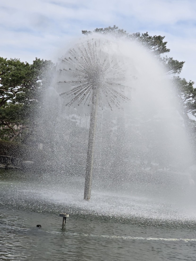 튜울립 꽃과 분수 그리고 맑은하늘