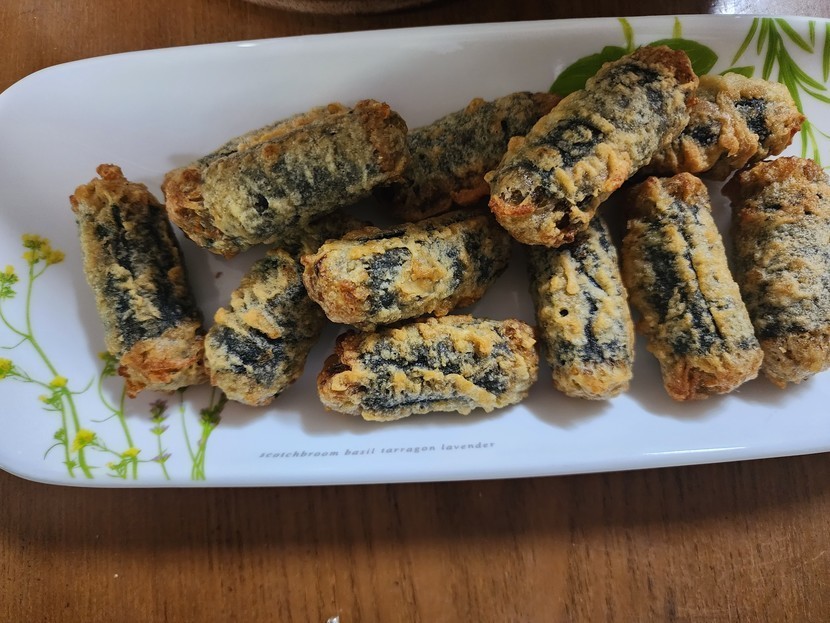 떡볶이 단짝인 김말이도 에프에 구워서 한끼로 세명이 잘 먹었네요..