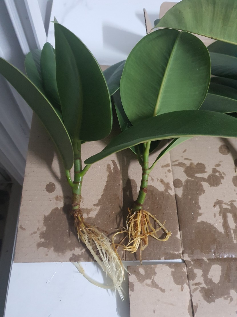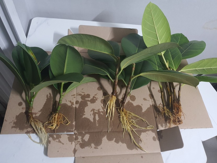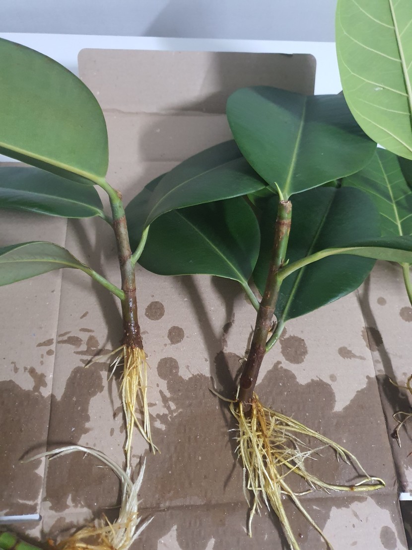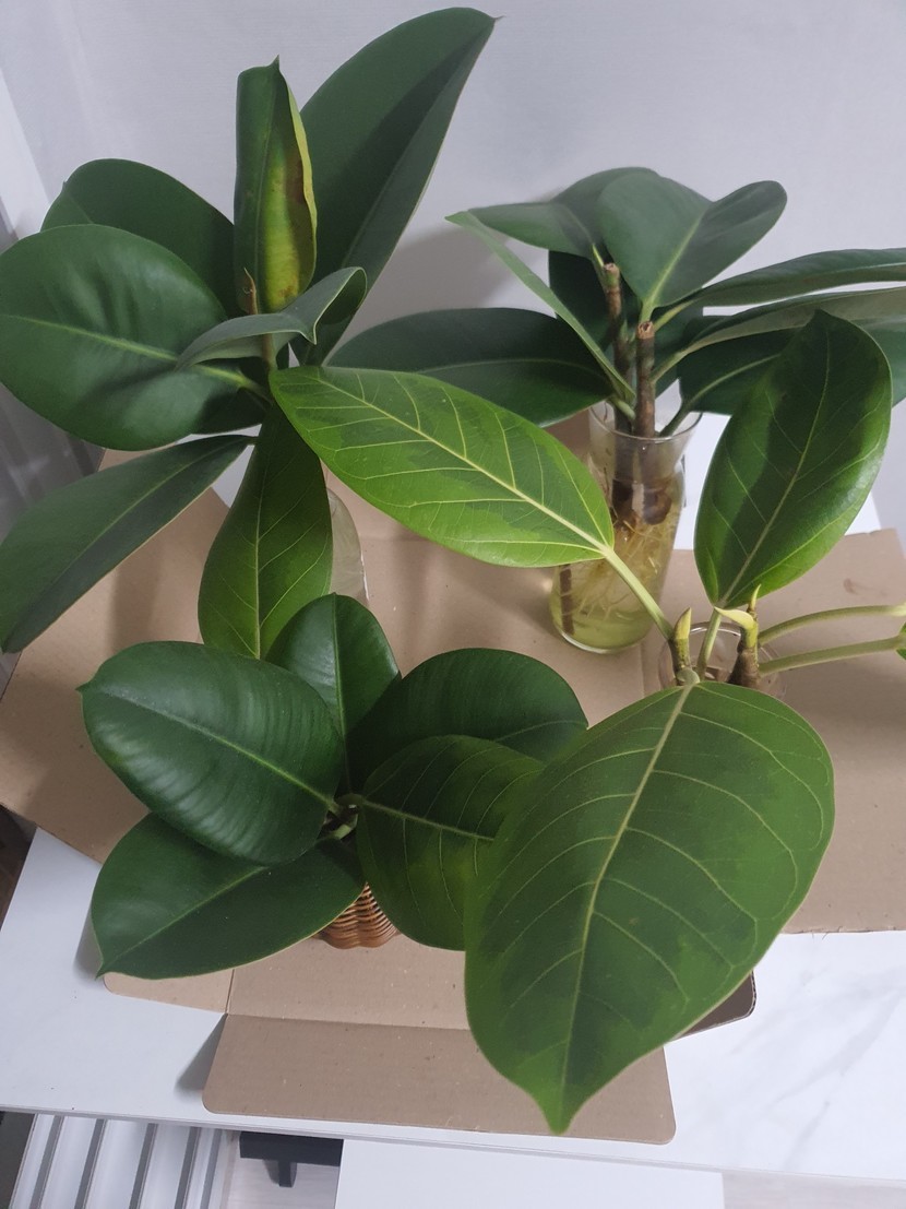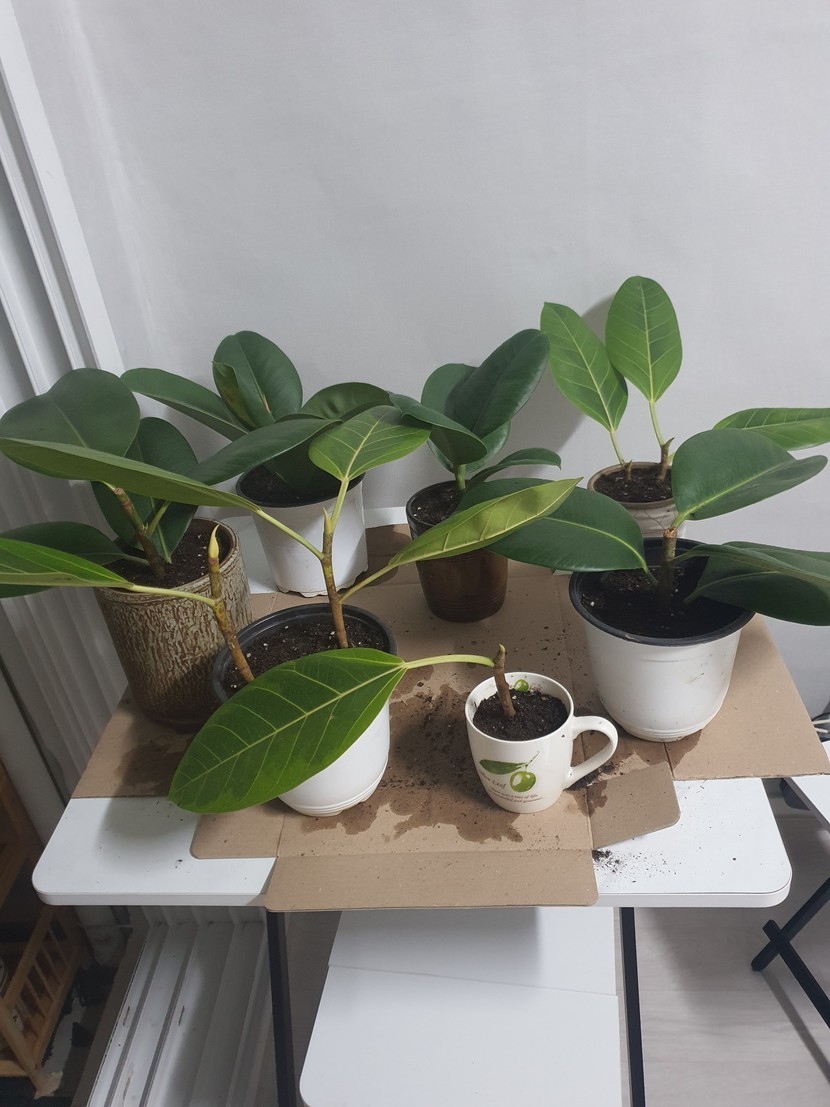 작년에 가지치기한 고무나무를 물에 담가놓았는데 뿌리가생겨 분갈이해줌~