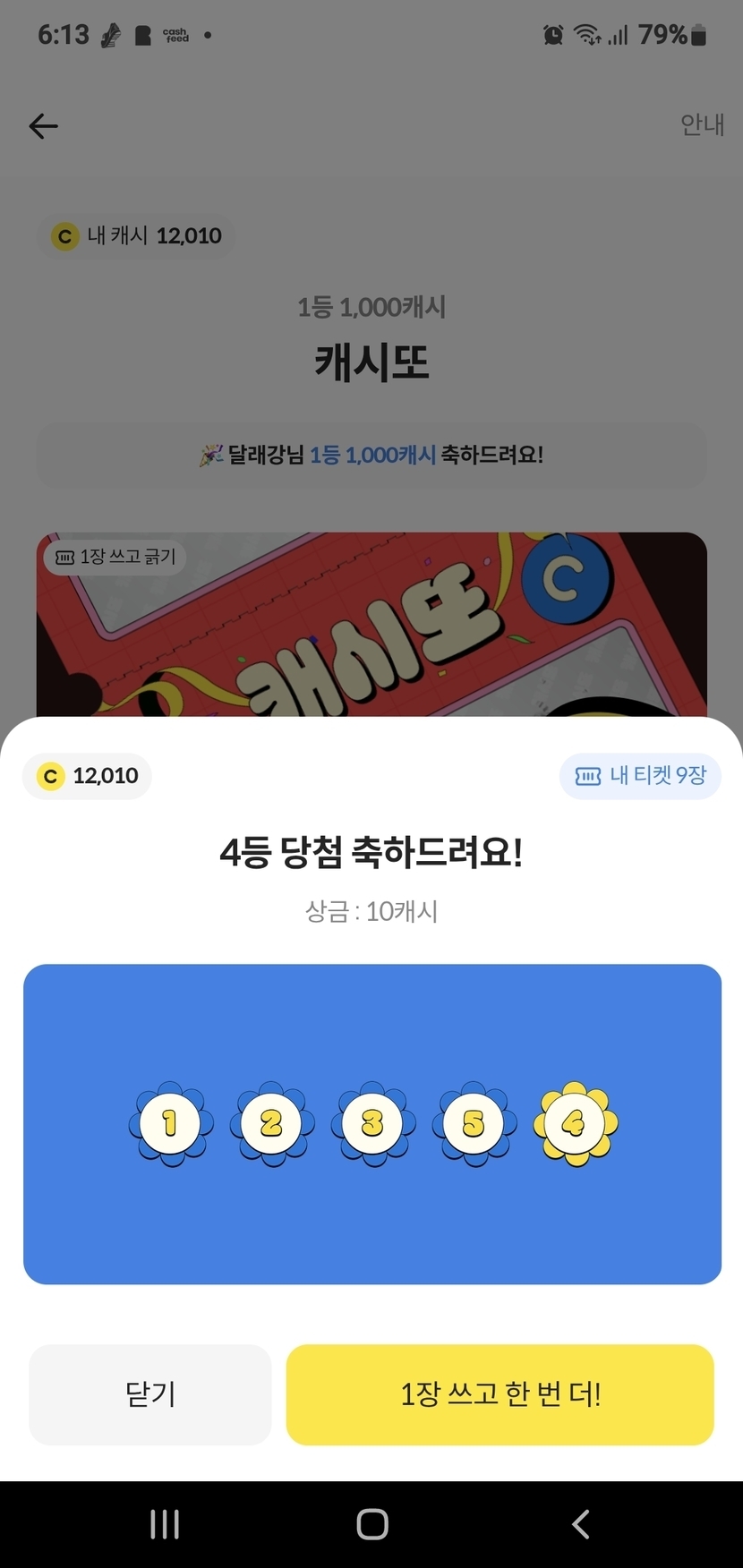 4등 10캐시...