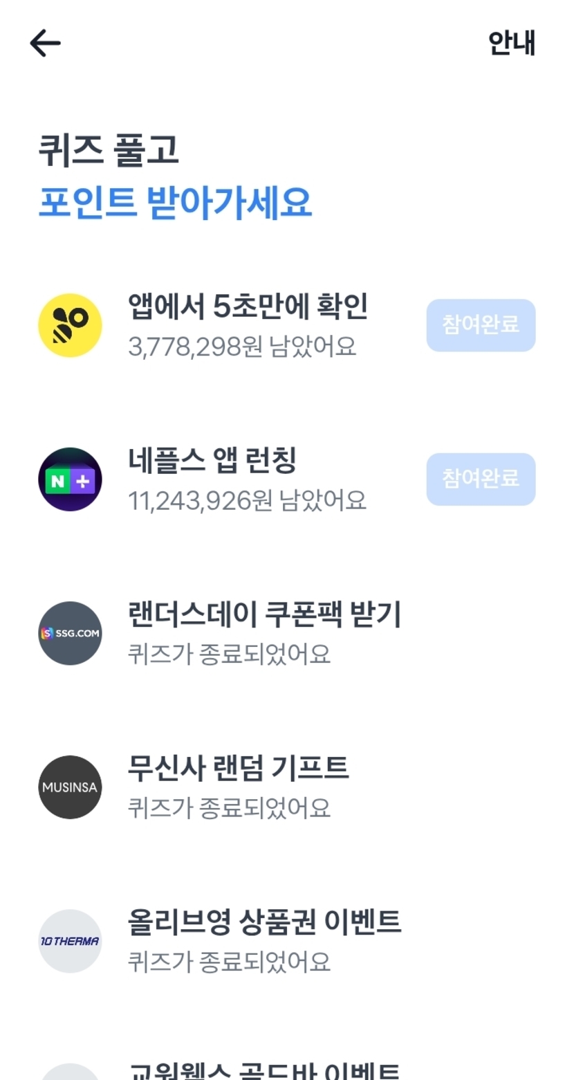 네이버페이 63원(6시 토스 행운퀴즈)