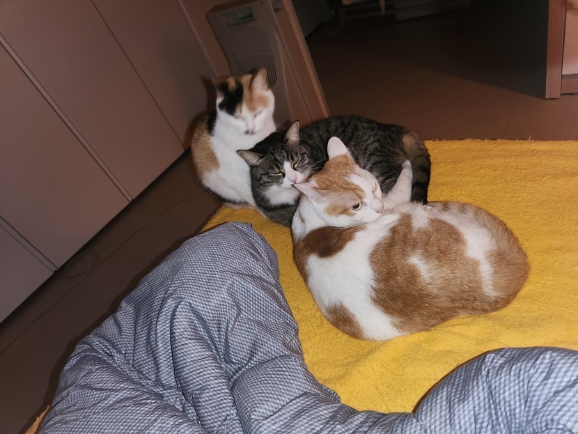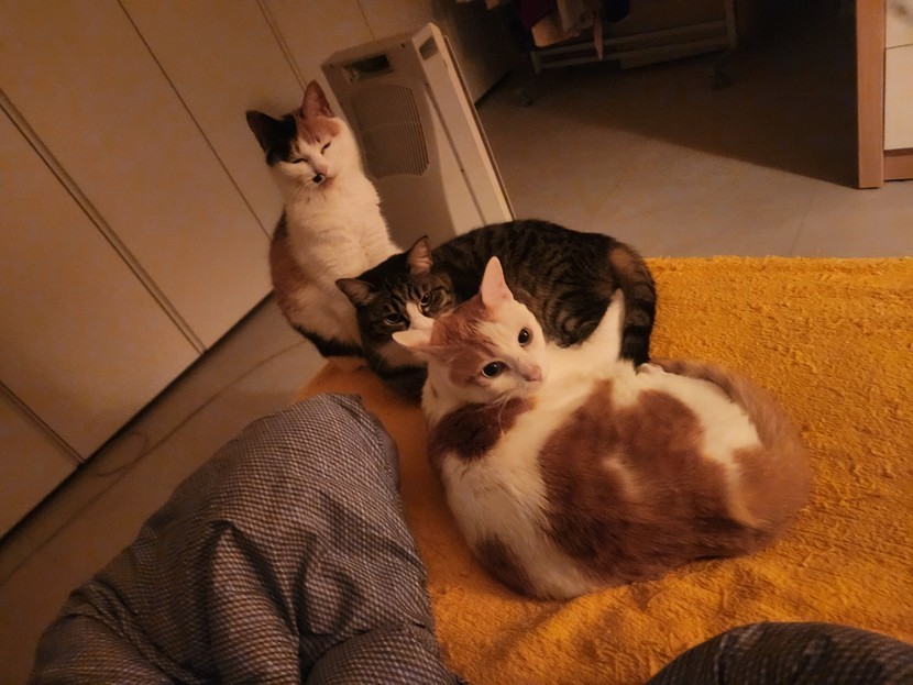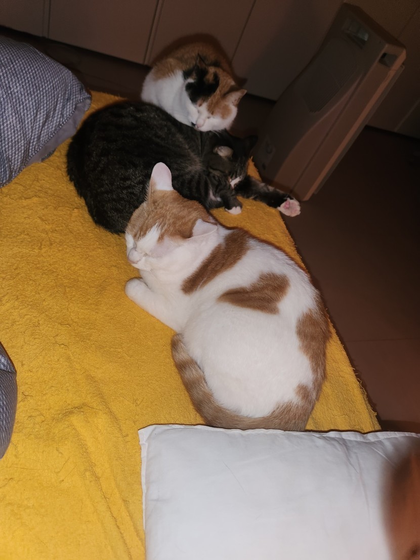 25.04.08 438 읽음 잘자라옹~~ 😸삼냥이네~🤣 구독하기 86 94 콘텐츠의 수익 26 삼냥이 잘준비들 하는데 사진찍으려 불렀더니 요래 바라봐 주네요.어두워보여 라이트켰더니그러곤 바로 잠드네요.옥이는 파랑이한테 머리 올리고 파랑인 난이한테 팔 걸치고ㅋ~~♡잠시후 뒤척이더니 난이가 하트 뿅! ❤️ 94 0 / 300 입력