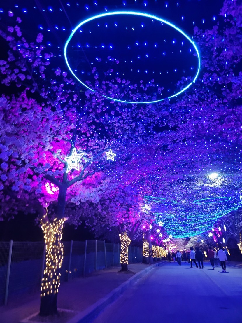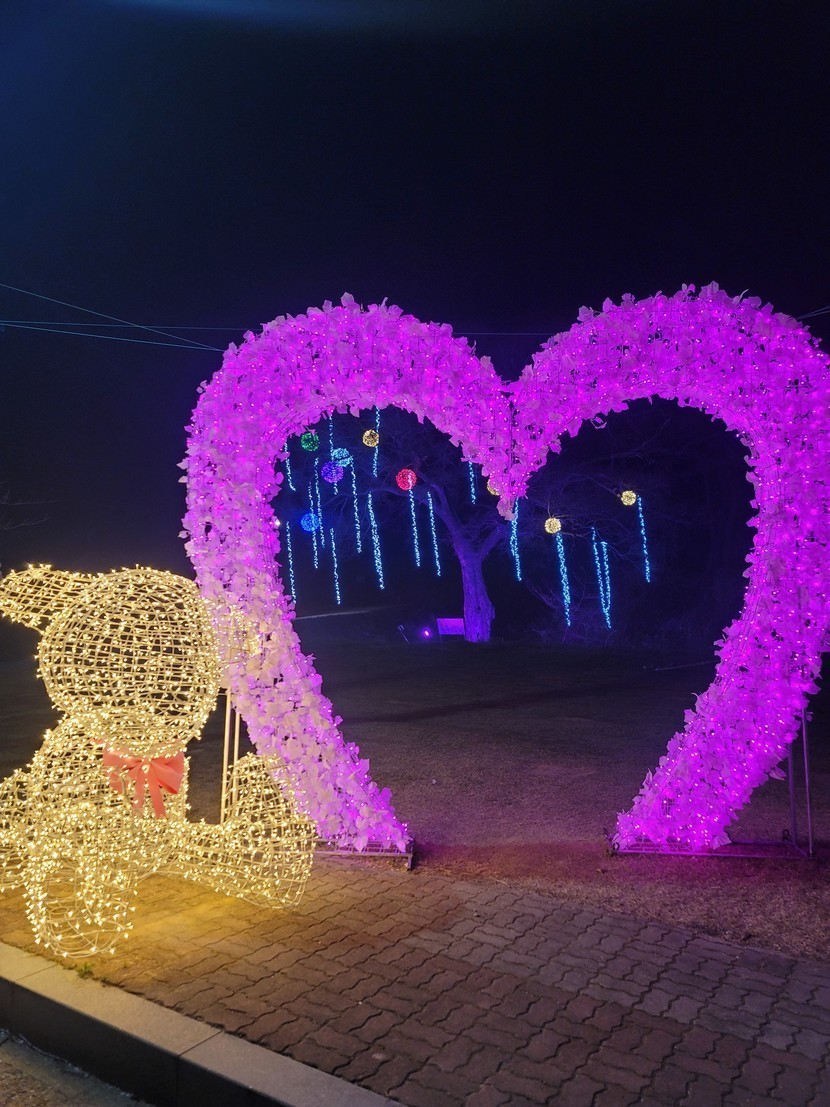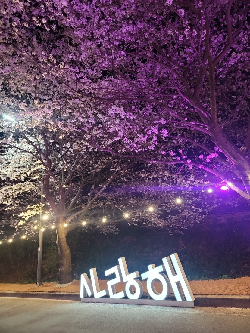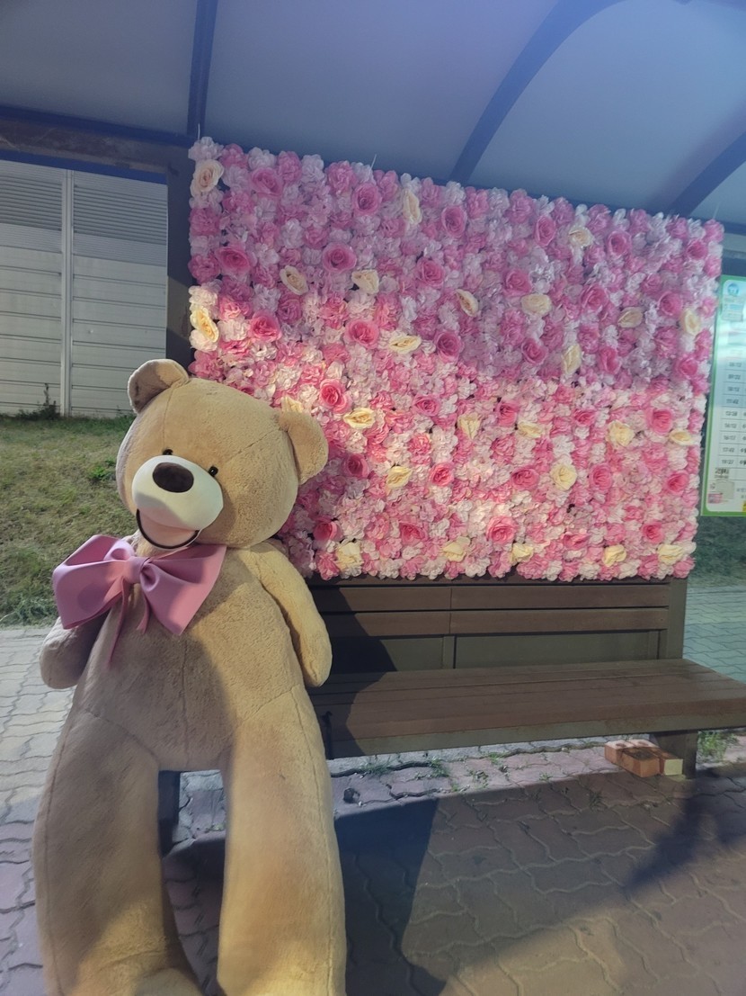 어제 고창 벚꽃야경 버스정류장 곰돌이🐻 (왕복5시간^^;;)