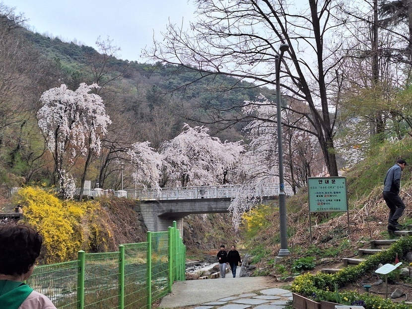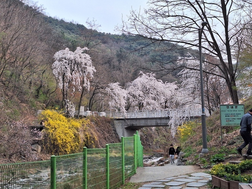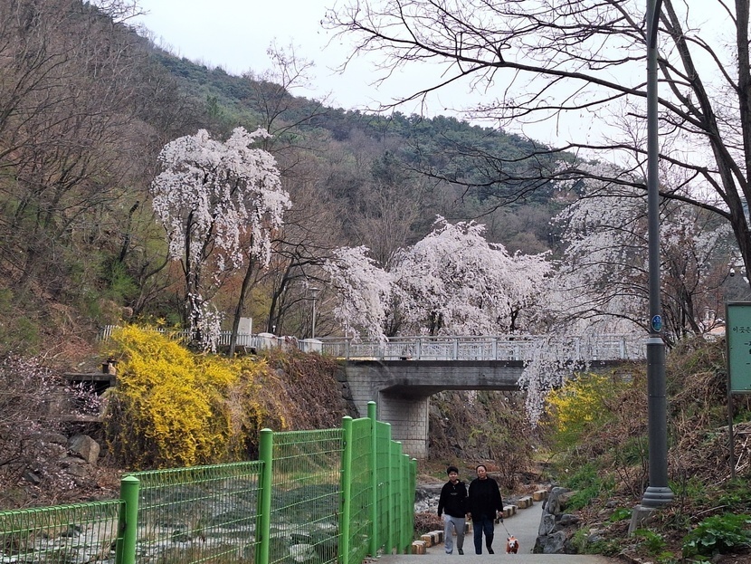 개나리와 수양벚꽃이 화려하네요