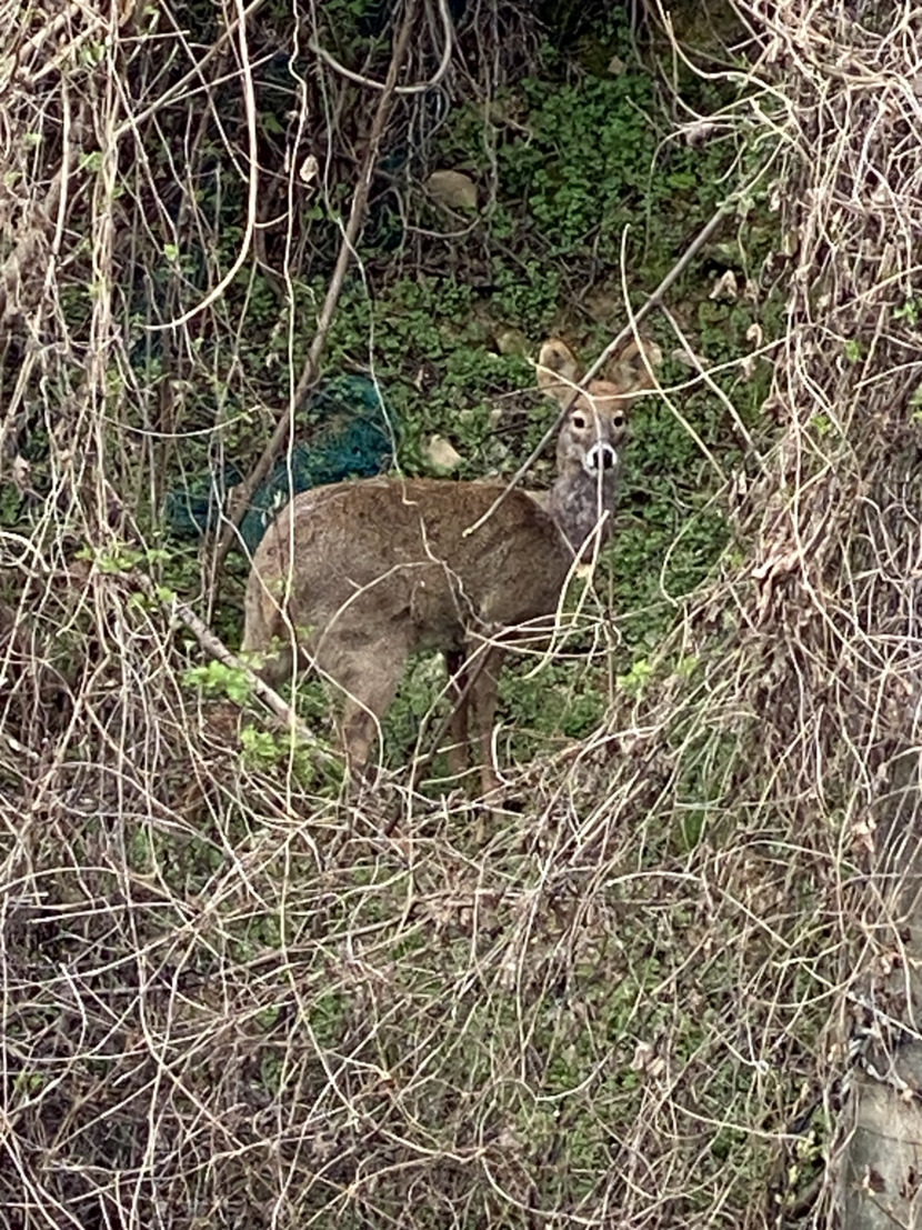 산책중 풀밑에 숨어있던 고라니입니다.