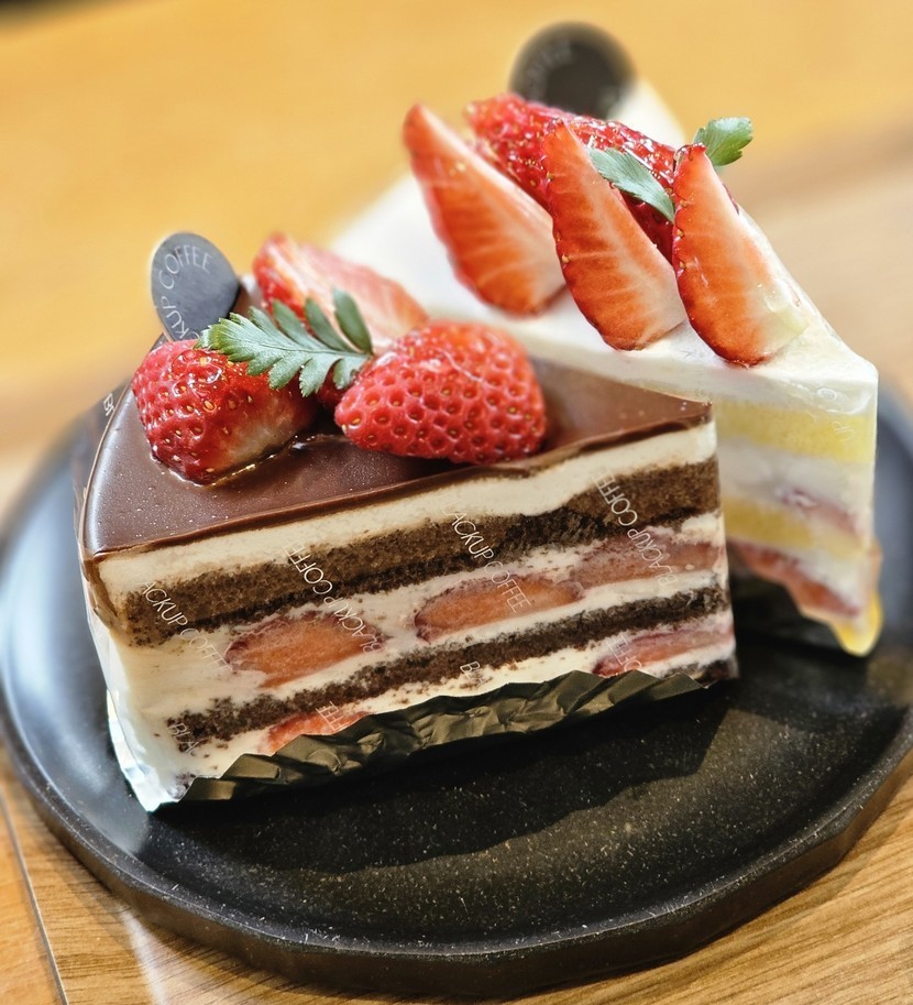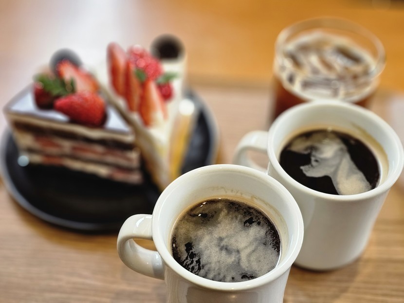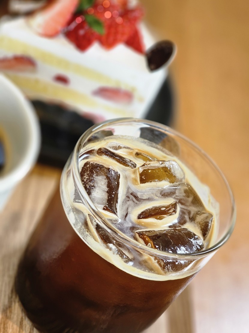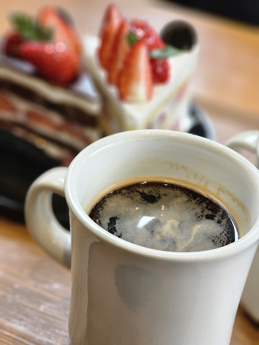 카페에서 아메리카노와 케이크