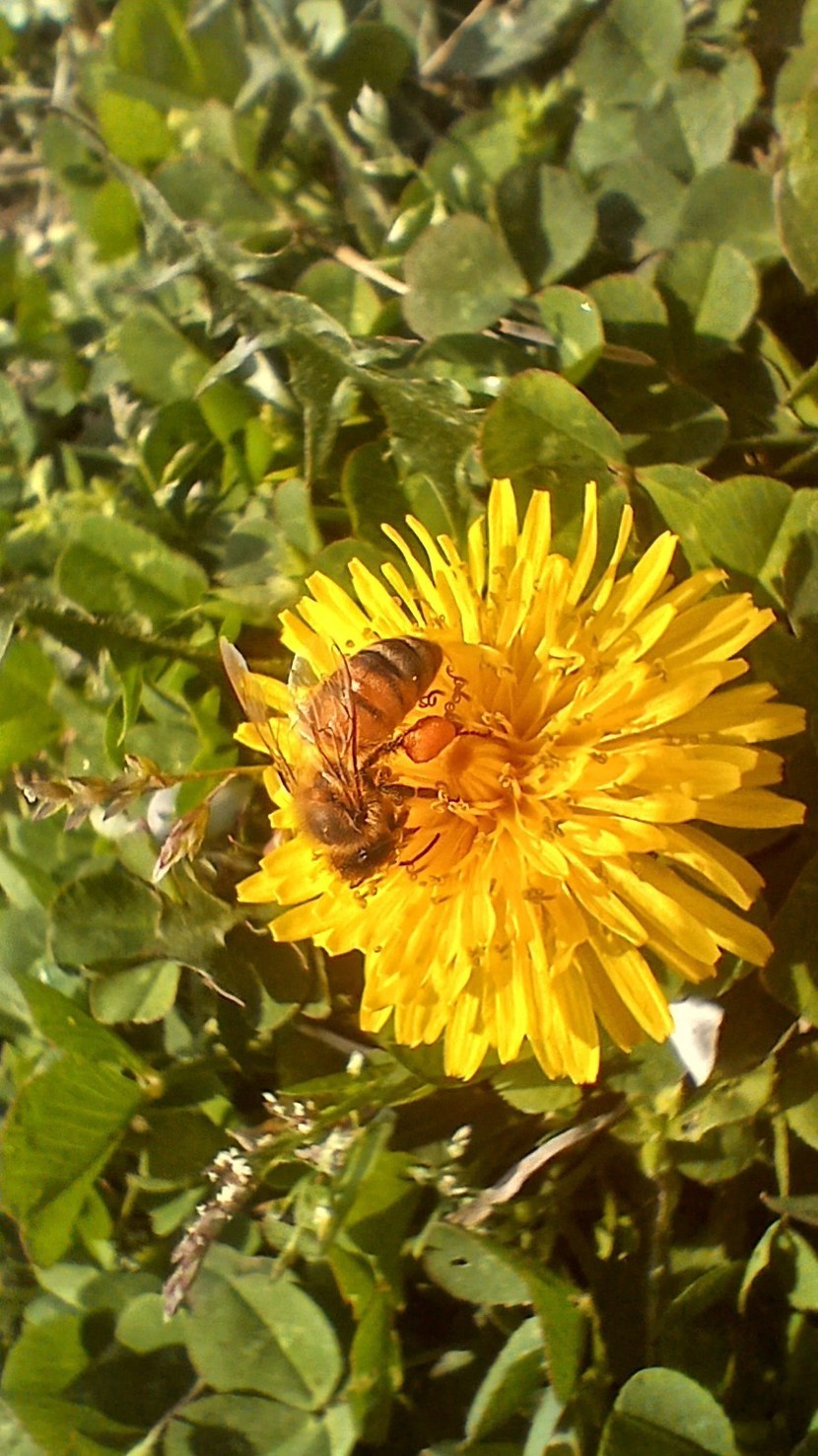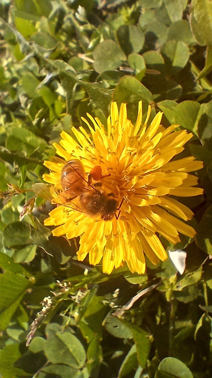 운동하러 가는 길에 찍은 민들레와 호박벌