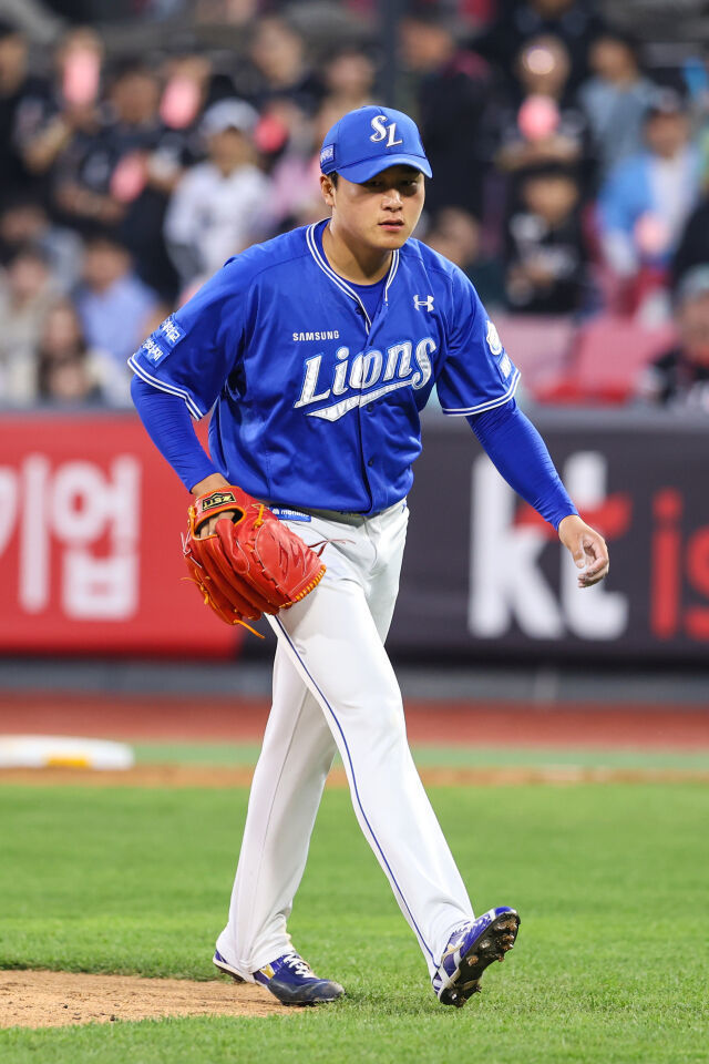 급하게 원상현이 마운드에 올라왔다. 류지혁이 중견수 1타점 희생플라이를 때려내며 삼성이 추격의 불씨를 댕겼다. 대타 강민호의 안타로 1사 1, 3루가 됐다. 이재현 타석에서 폭투가 나와 3루 주자 김헌곤까지 득점을 올렸다. 원상현은 이재현과 7구 승부 끝에 삼진을 잡았다. 김성윤이 라인 드라이브 타구를 만들었지만, 이는 바뀐 1루수 황재균의 글러브로 빨려 들어갔다.
