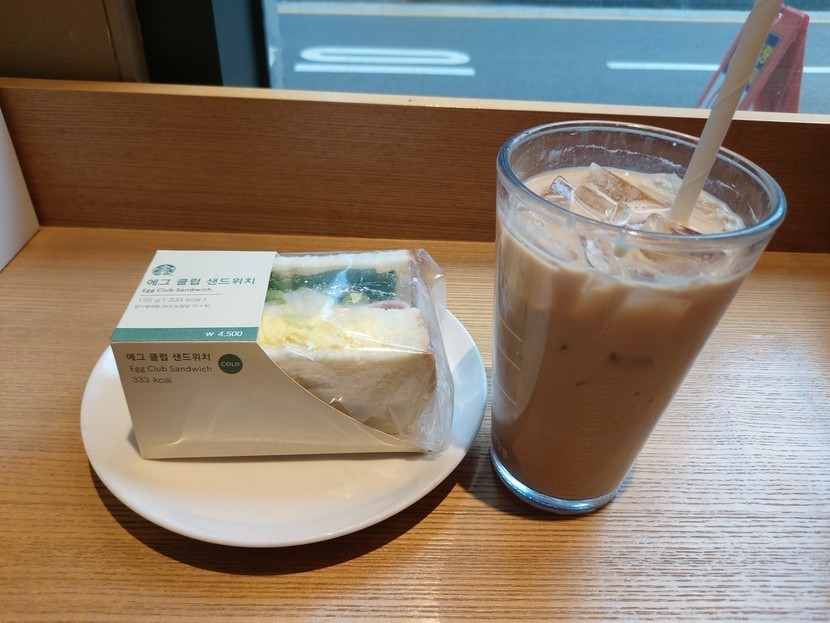 스벅라떼랑샌드위치💚💚