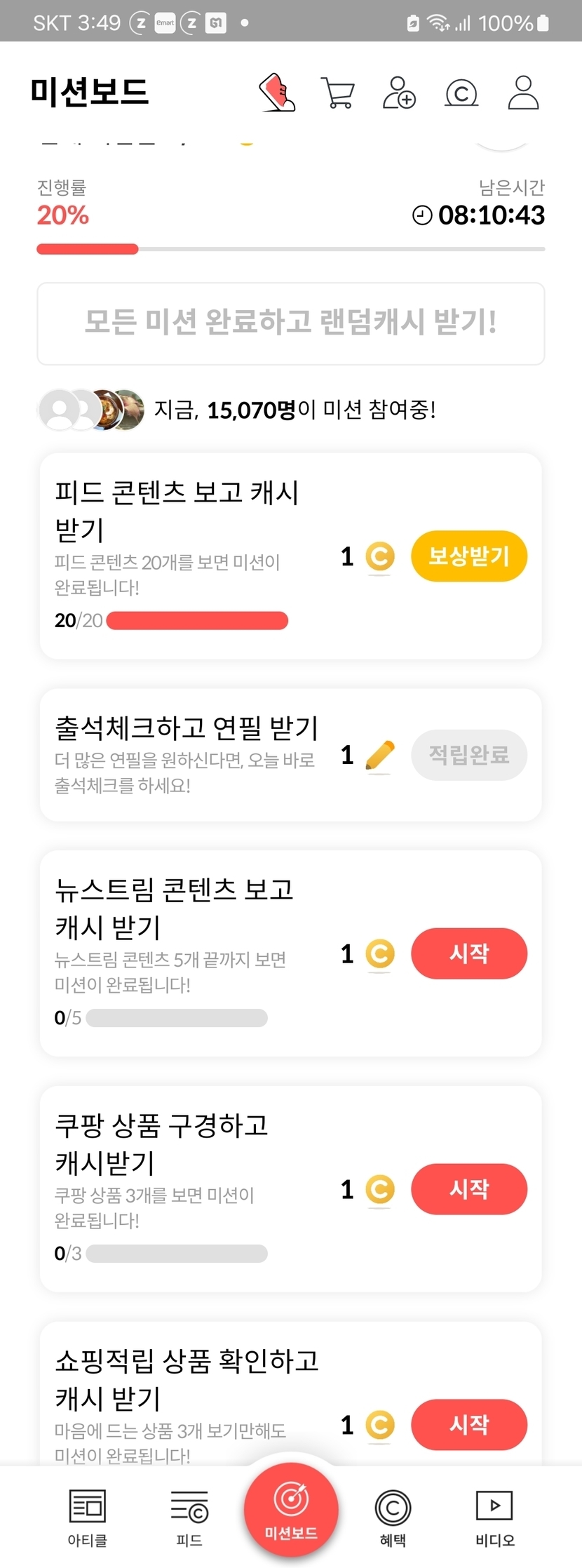 지금시각 15시49분 미션보드~미션 중 인증샷~~