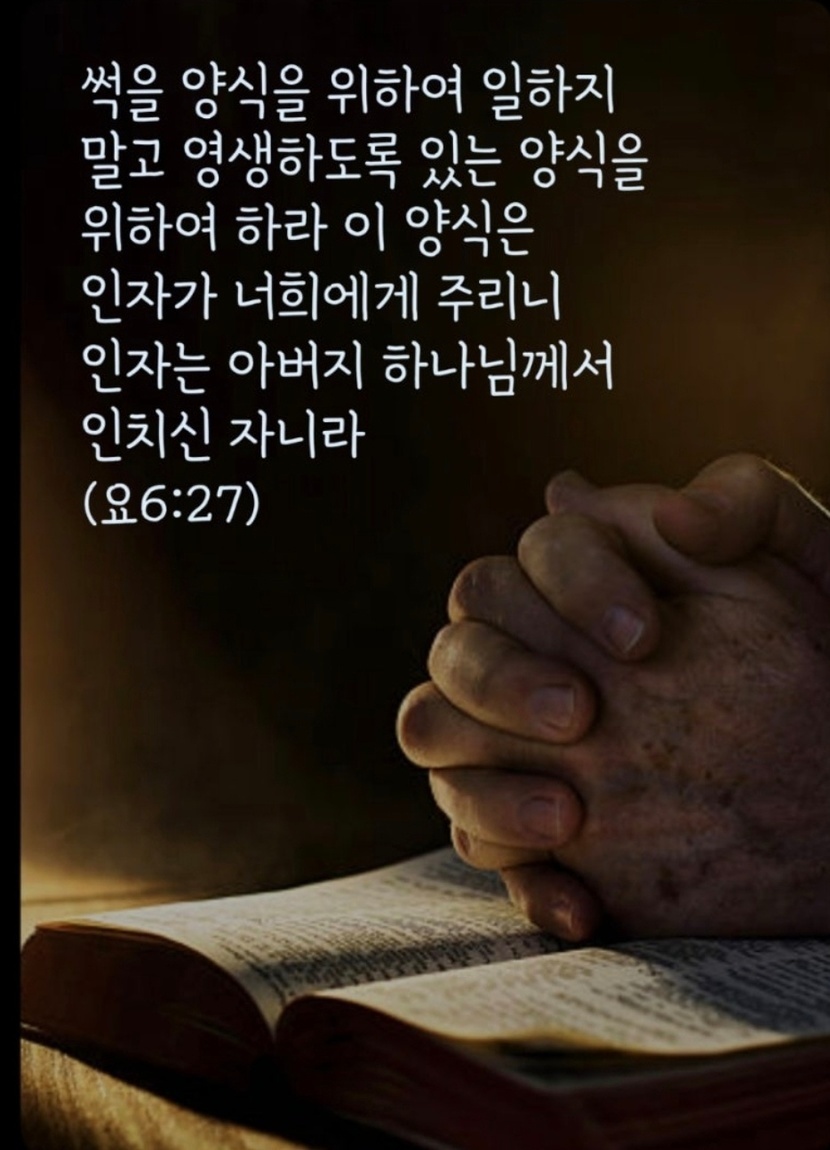 썩을 양식을 위하여 일하지 말고 영생하도록 있는 양식을 위하여 하라 이 양식은 인자가 너희에게 주리니 인자는 아버지 하나님께서 인치신 자니라 (요한복음 6장 27절)