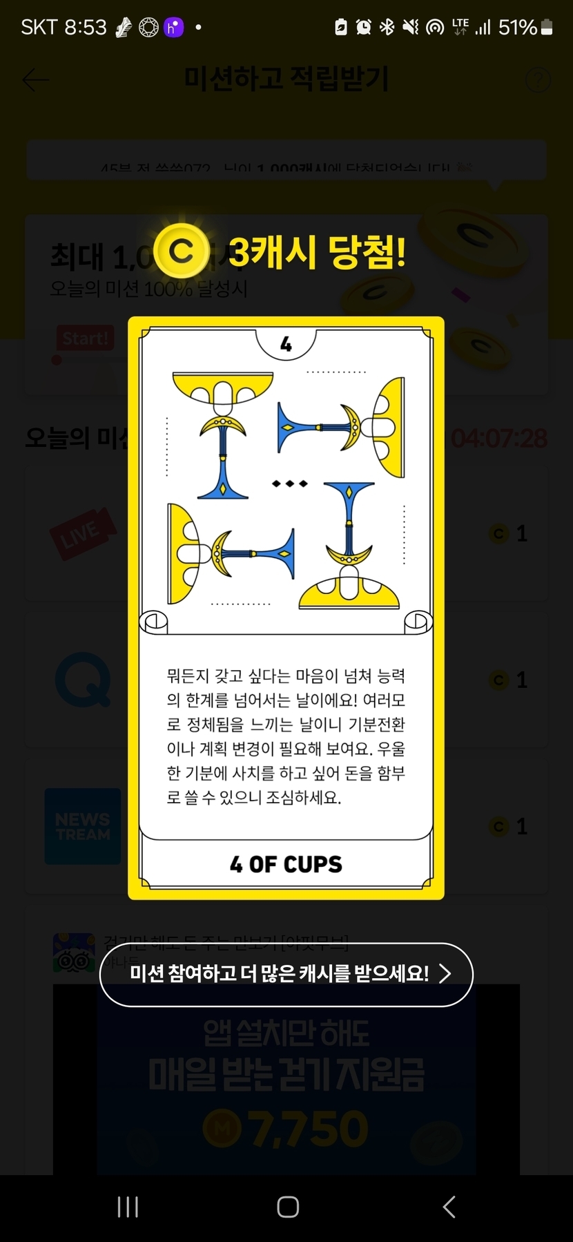 오늘 타로 3캐시! 😀😀