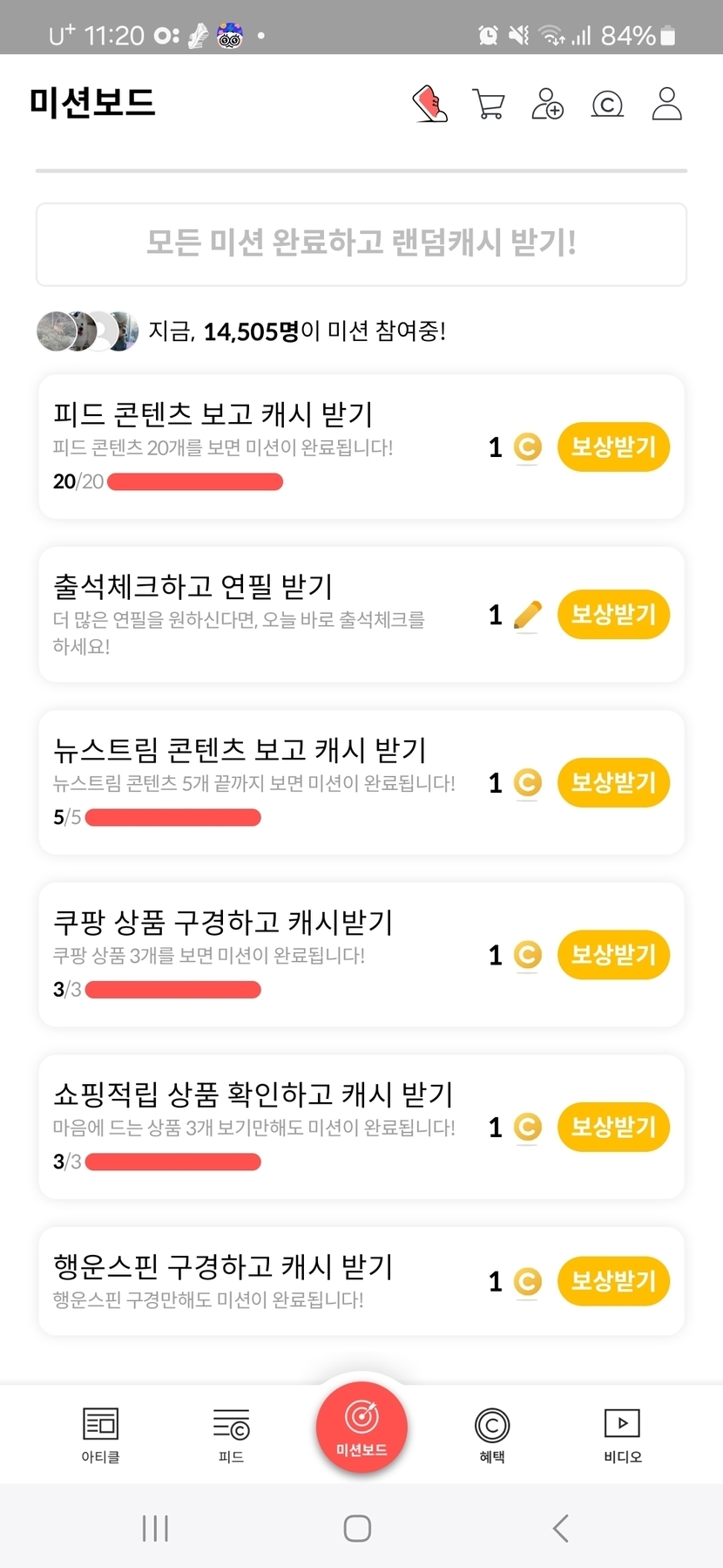 미션보드 클리어