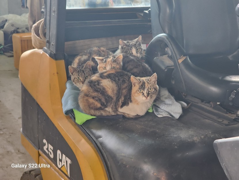 고양이들지게차위에옹기종기 ㅋㅋㅋ