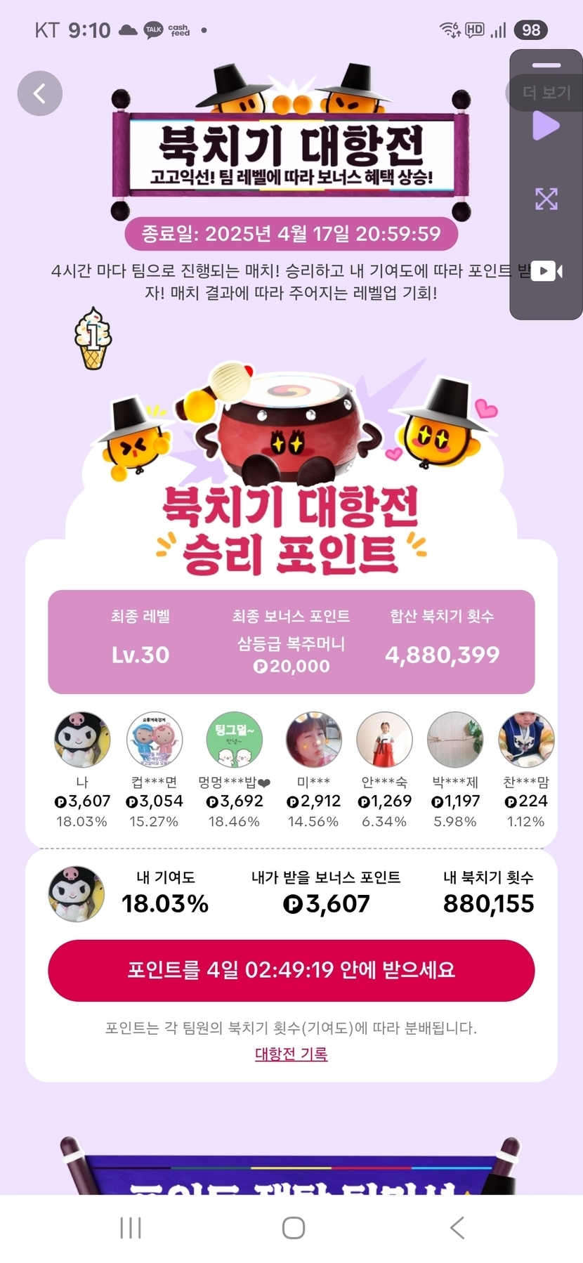 북치기 대항전 급하게 숙제처리 여튼 숙제끝
