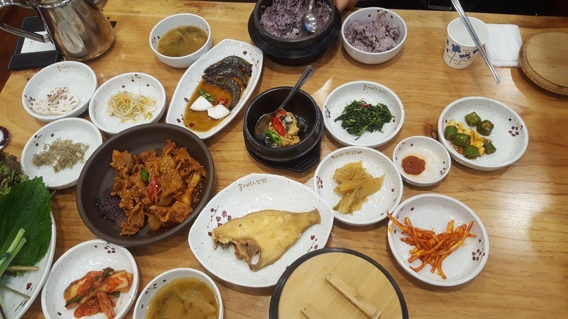 여기나온 밑반찬 생선구이(추가주문가능)콩나물,도라지무침,나물무침,묵은지,멸치볶음,김치고추마늘무침,연근무침 은 셀프로 마음껏 먹을수 있었구요😁😁😁