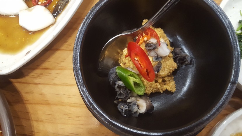 돌솥에 밥하구 된장국이 앞에 놓아지구~~뭐부터 먹을까 고민중입니다 ㅎㅎ