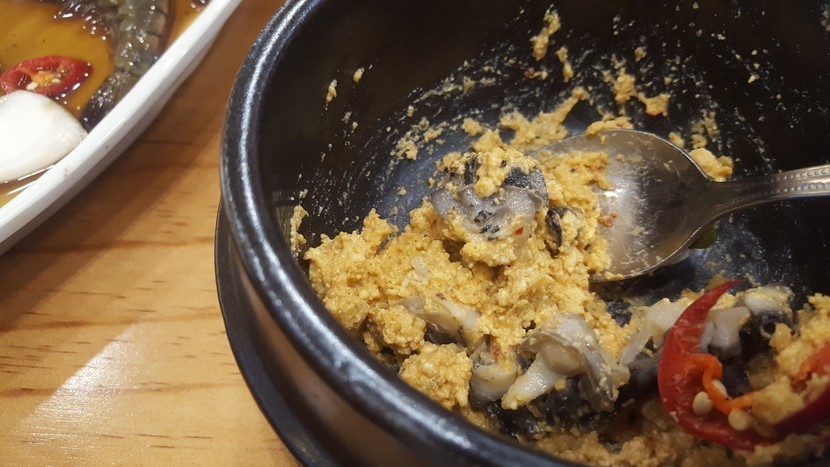 젤 중요한 쌈도 마음껏~~우렁된장은 처음에 요렇게 나왔어요 ㅎㅎ 첨 올린 된장은 열심히 비벼놓은사진이네요~~
