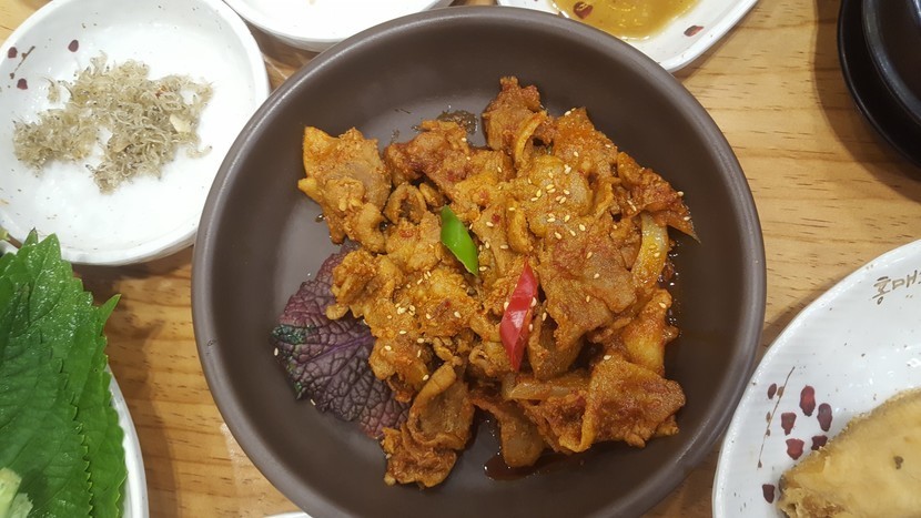 지금 있는 제육볶음,새우장,우렁강된장(두부랑 견과류가 잔뜩)이 무한리필이었어요 ㅎㅎ둘이 가서 깔끔하게 세번씩 먹었답니다😆😆😆