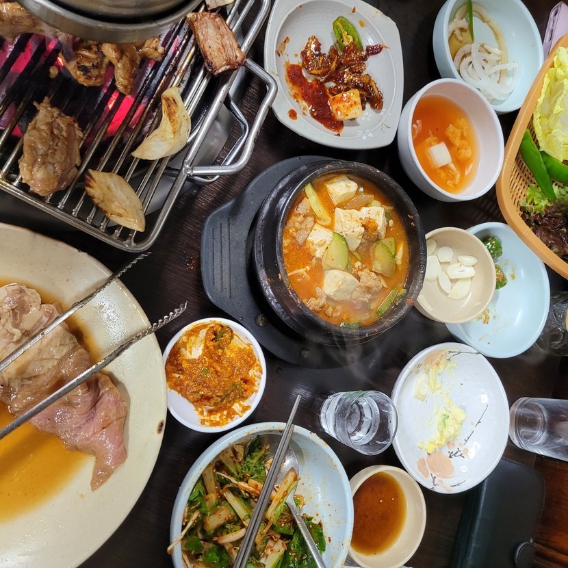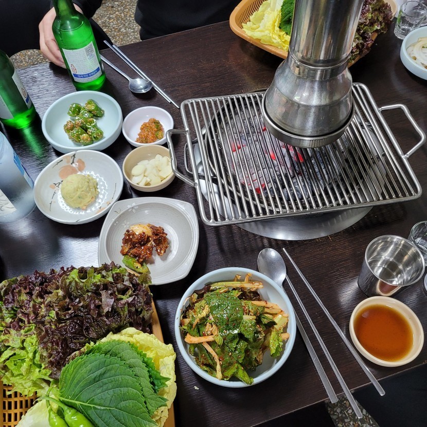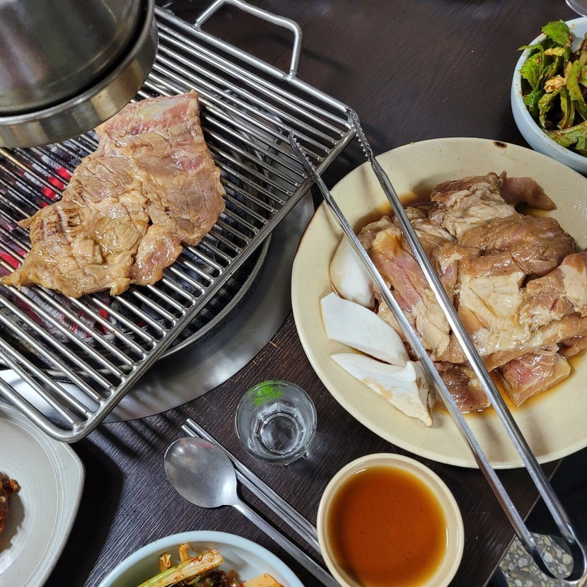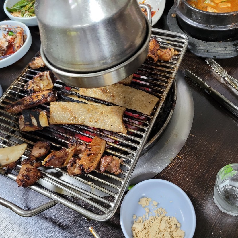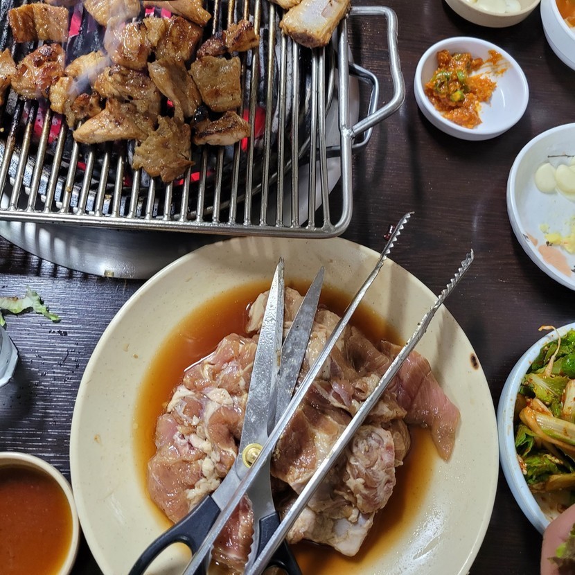 돼지갈비에 껍데기 까지 맛나게~😄😁👍