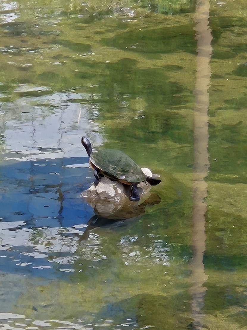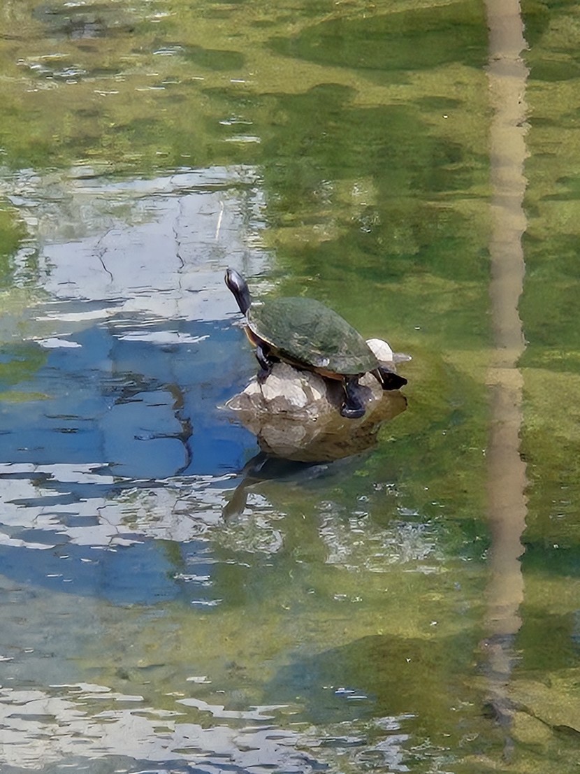 오늘 산책길에서 만난 자라 등에 이끼가 낀거처럼. 초록초록하네요
