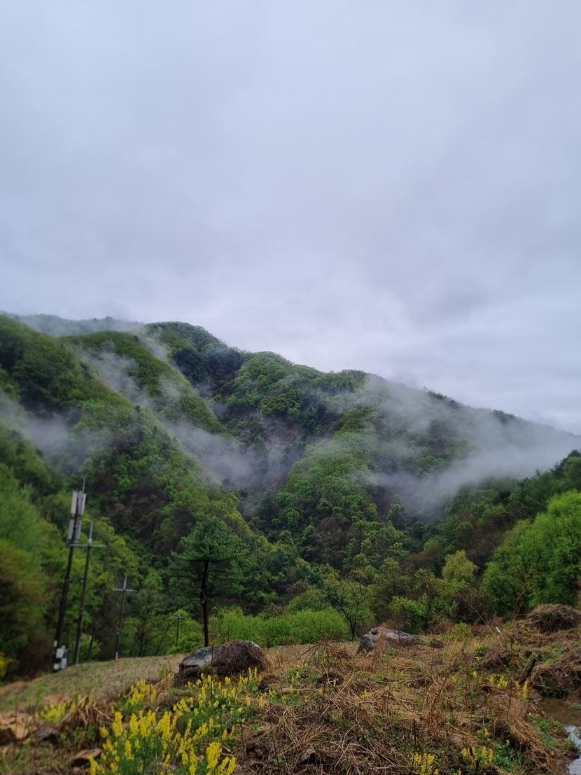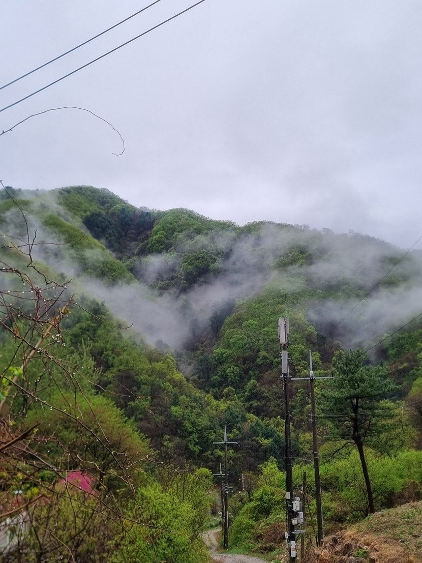 청평집비온뒤물안개가예뻐서올려봐요