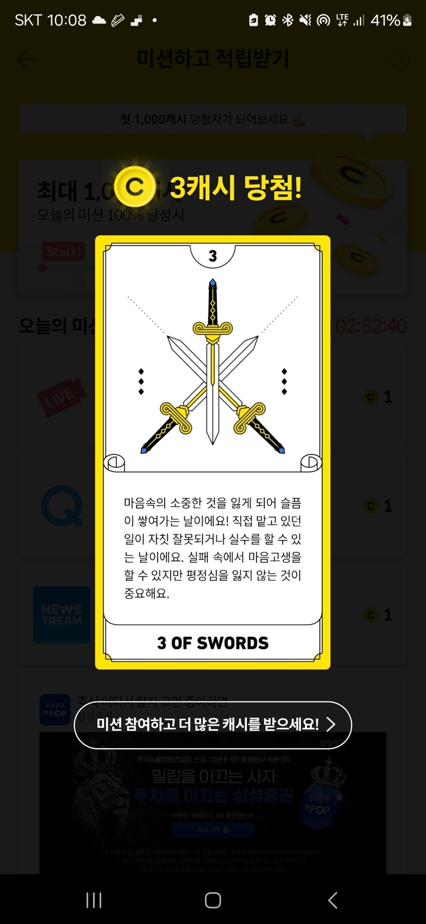 오늘 타로 3캐시! 😀😀