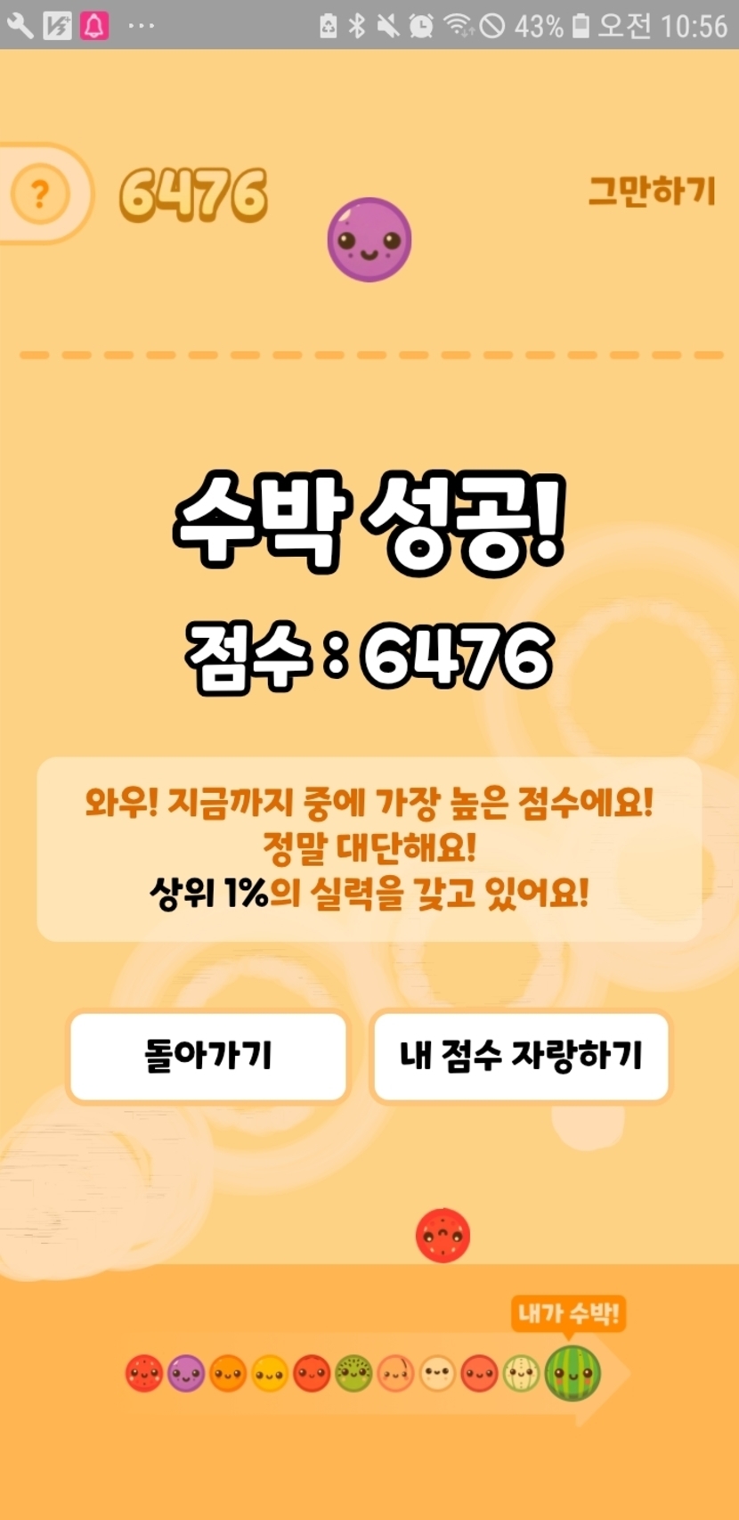 수박만들기 요령이 생기나 봅니다.점수가 점차 높아집니다.