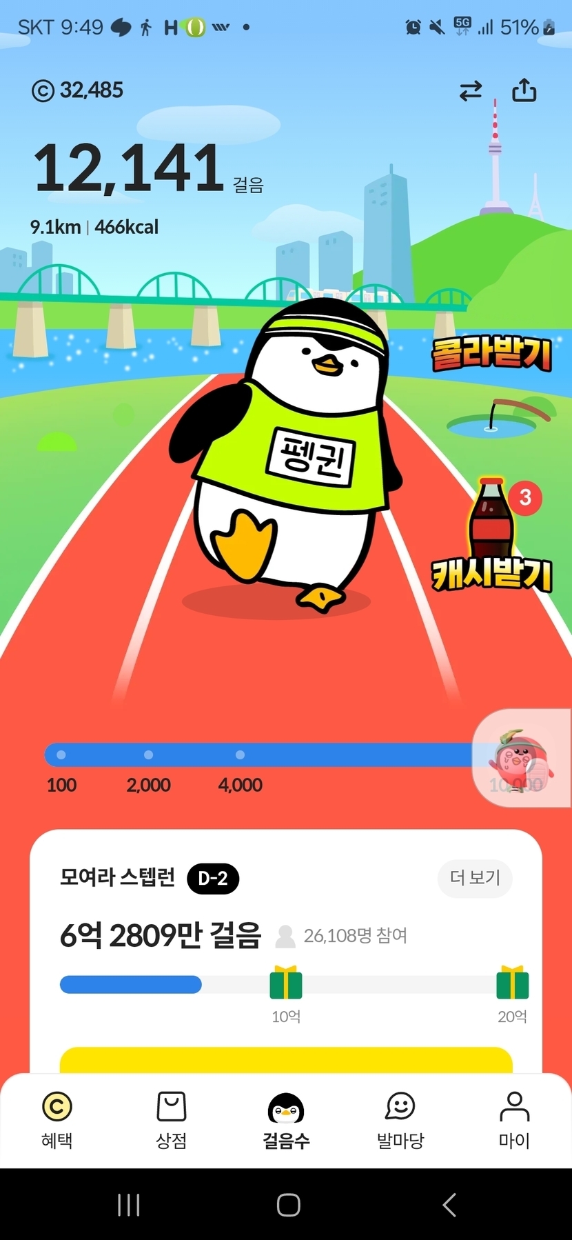 스텝런 10포인트씩 받았어요