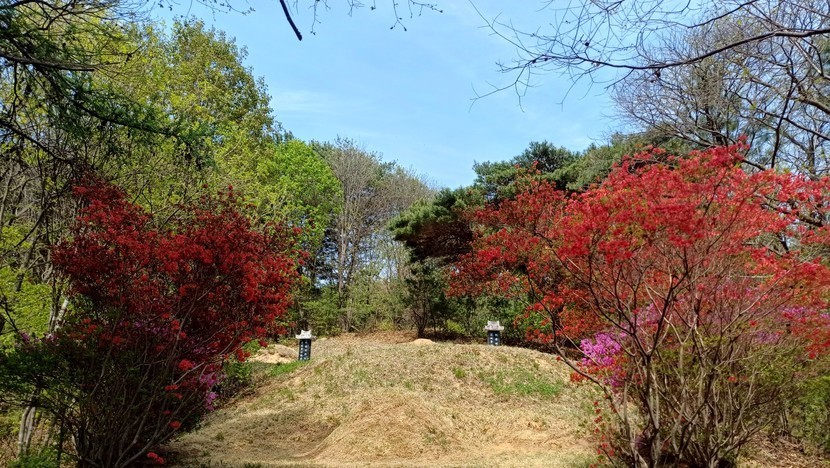 아빠 산소에 꽃이 활짝