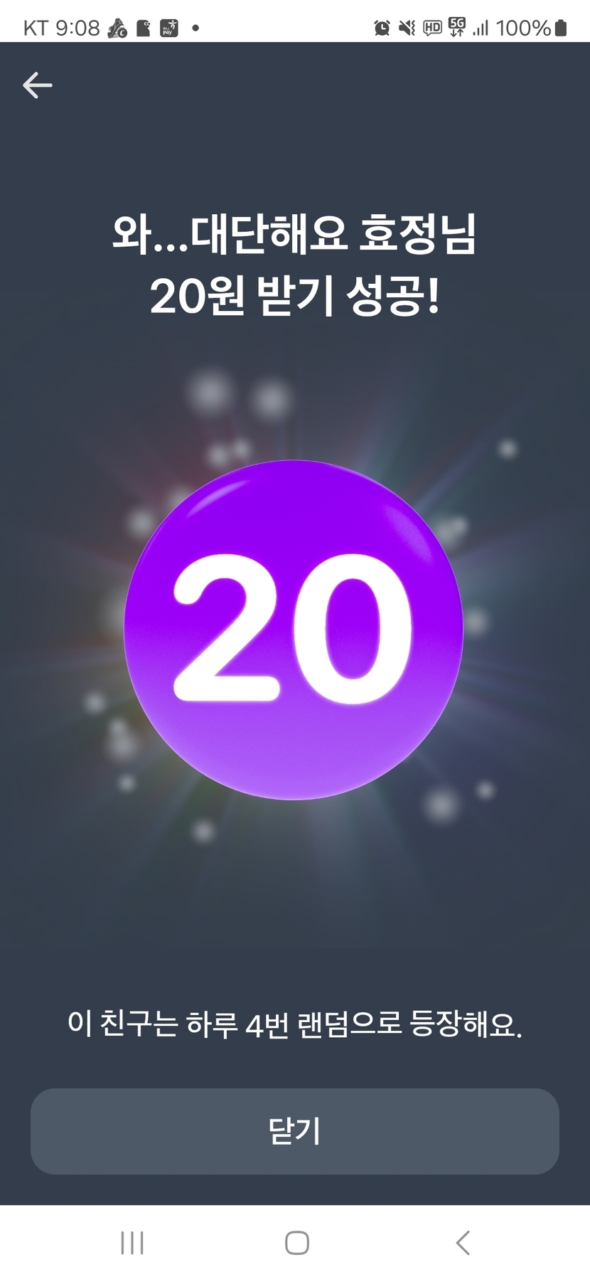 토스 포인트 받기가 있어서 눌렀는데 우와 받기힘든 20원을 받았어요