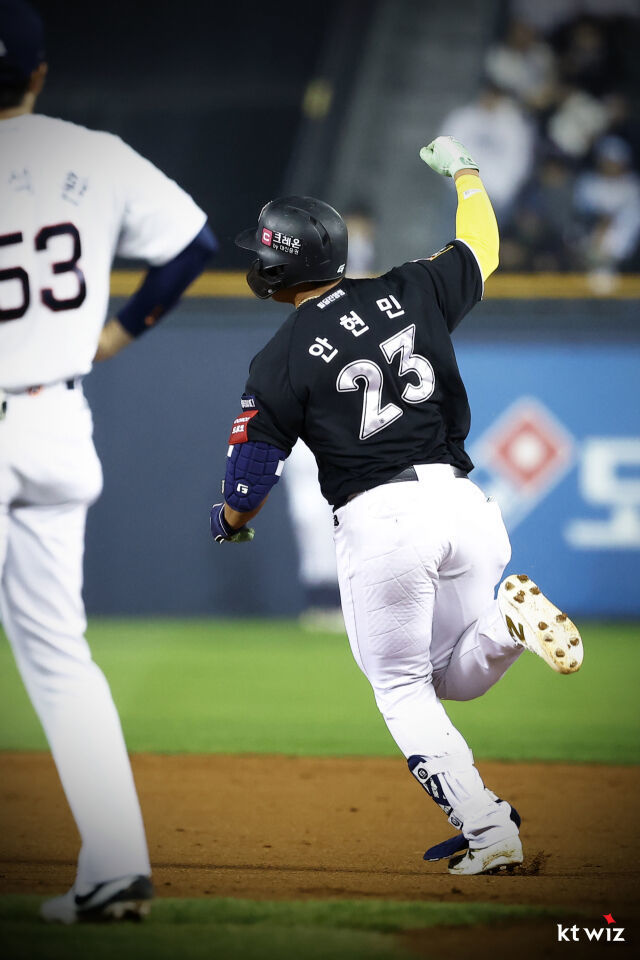 안현민은 "아마추어 시절은 또래에 비해서 (힘이) 월등하게 좋은 편은 아니었다. 평균보다 조금 높은 느낌이었다. 그때는 파워보다는 정교한 타자라는 평을 받았다"며 "여기(KT) 와서는 파워를 늘려서 (정교함과) 시너지를 내면 좋겠다는 생각에 파워를 늘렸다"고 설명했다.