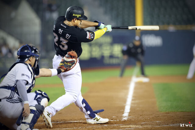 KT는 9회 마지막 기회를 잡았다. 3-5에서 황재균이 선두타자 안타를 치고 나갔다. 강백호는 좌익수 뜬공으로 아웃됐다. 4번 타자 로하스가 타석에 들어섰다. 대기 타석에는 안현민이 대기했다. 안현민까지 타석이 연결된다면 분위기상 경기는 알 수 없었다. 하지만 로하스의 잘 맞은 타구가 1루수 최주환의 글러브에 빨려 들어갔다. 1루 주자 황재균은 움직일 수 없었고, 그대로 최주환이 1루를 밟으며 포스 아웃됐다.